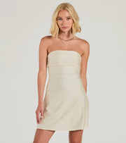 This strapless A-line mini dress is an elegant choice for homecoming, combining a flattering silhouette with a chic, modern design. Perfectly tailored to enhance your figure, it offers both style and comfort for your special event.