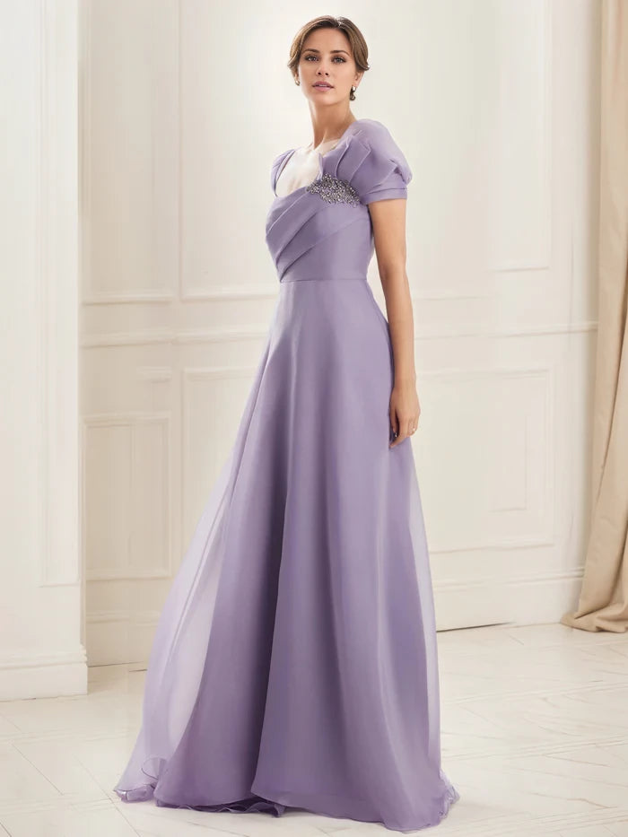 A-Line Embellished One Shoulder Pleated Bodice Mother of the Bride Dresses