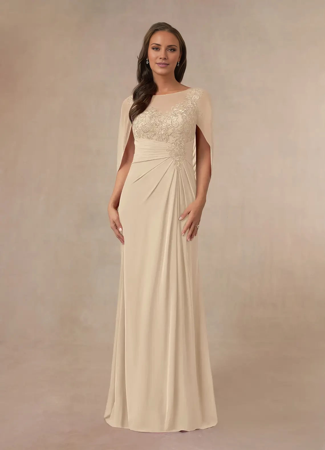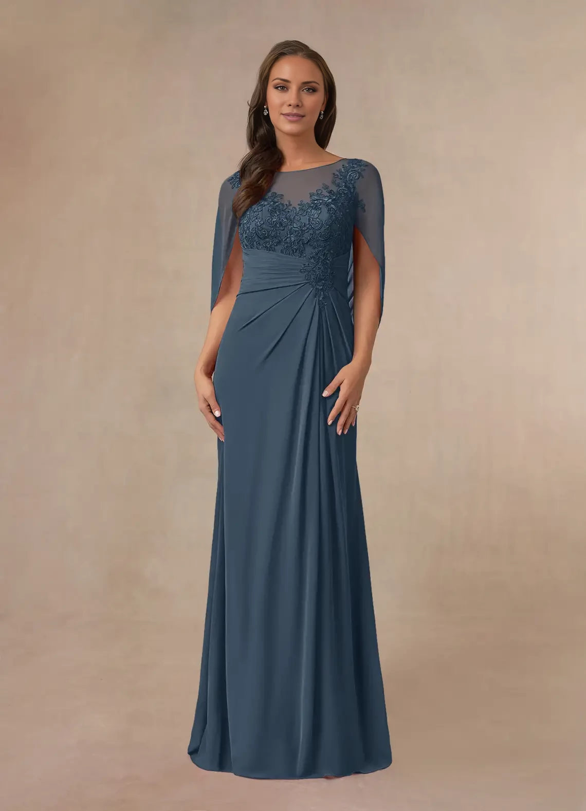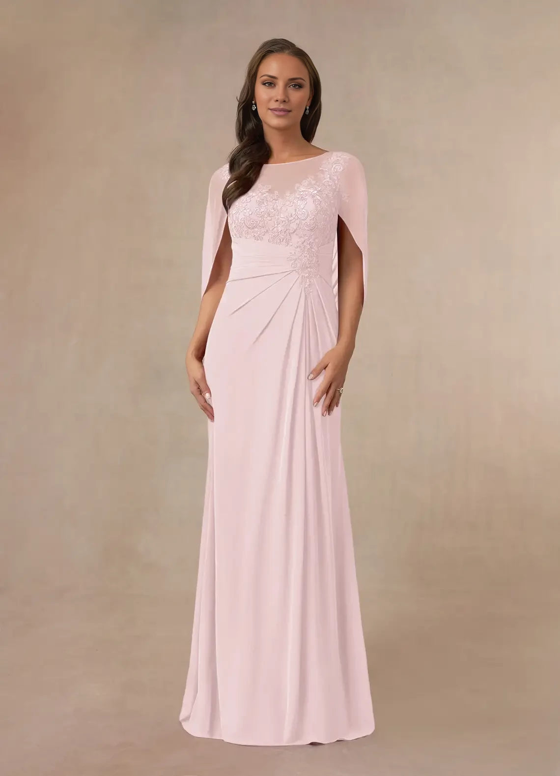 A-Line Lace Capelet Chiffon Dress Mother of the Bride Dresses