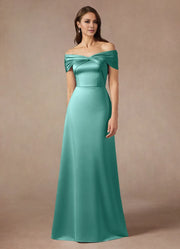 A-Line Off the Shoulder Satin Dress Mother of the Bride Dresses