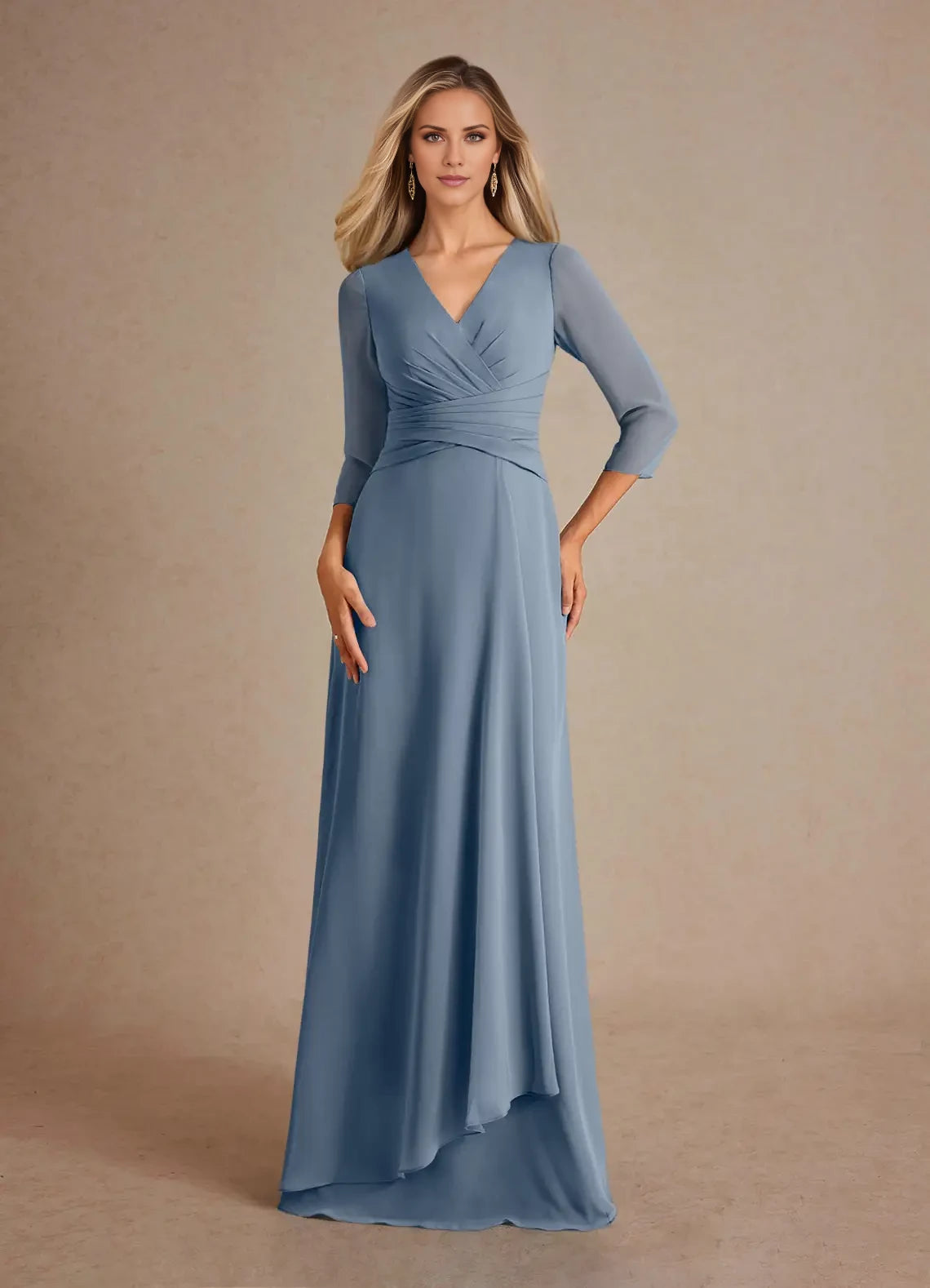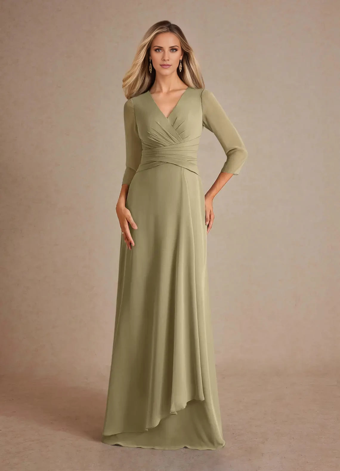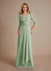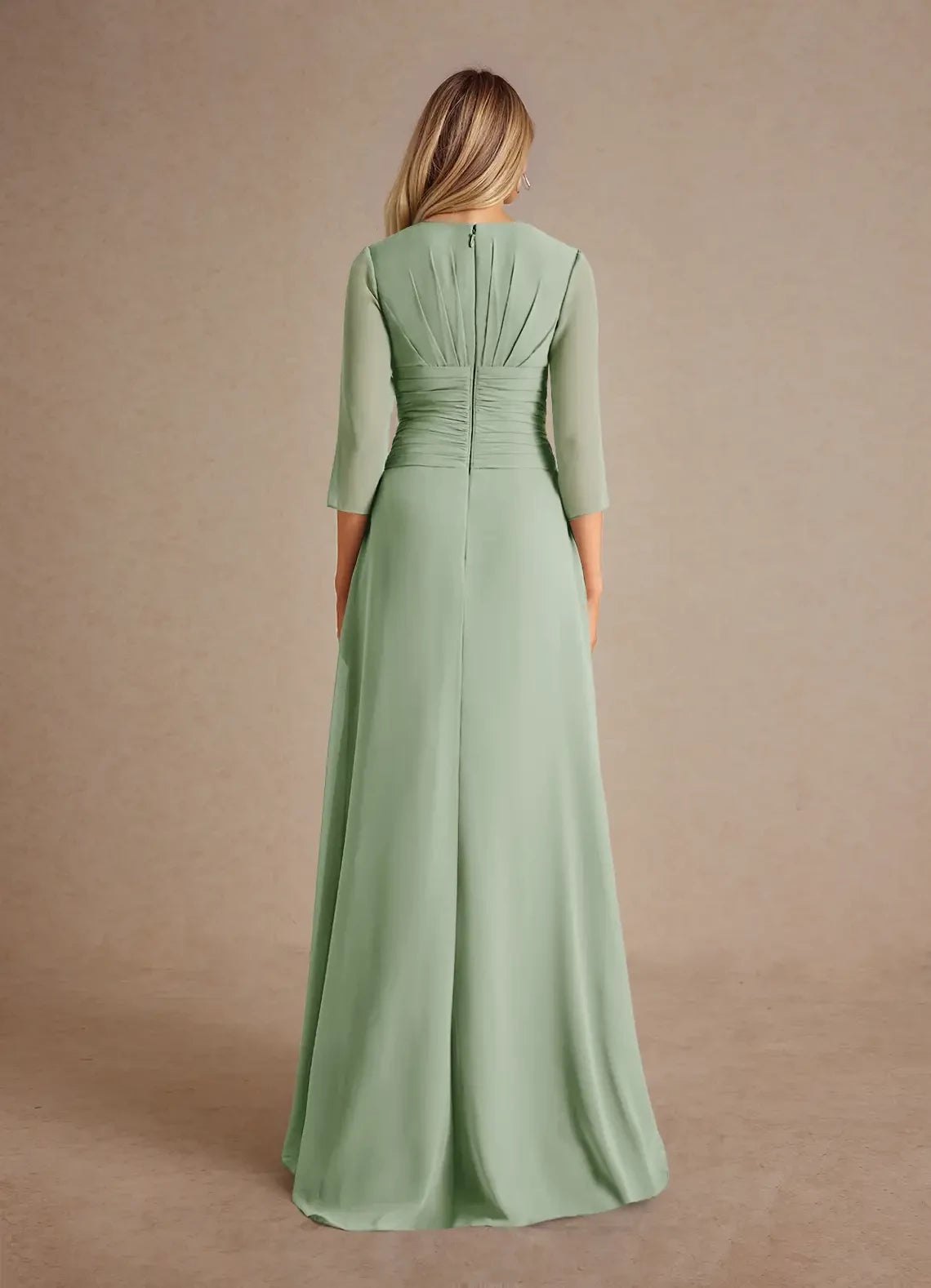 A-Line Pleated Chiffon Dress Mother of the Bride Dresses  - Dusty Sage / US 2 / UK 6 / EU 32