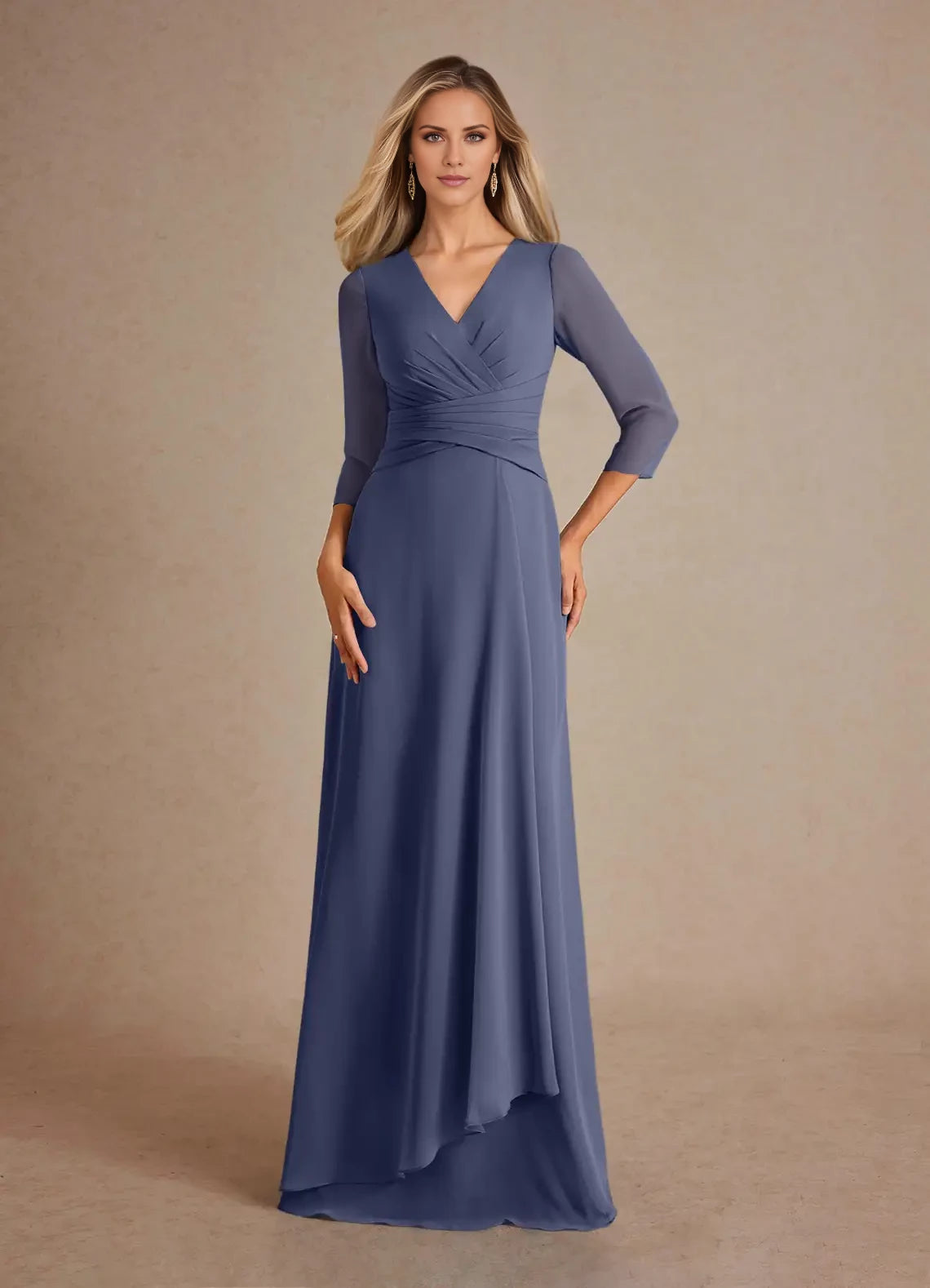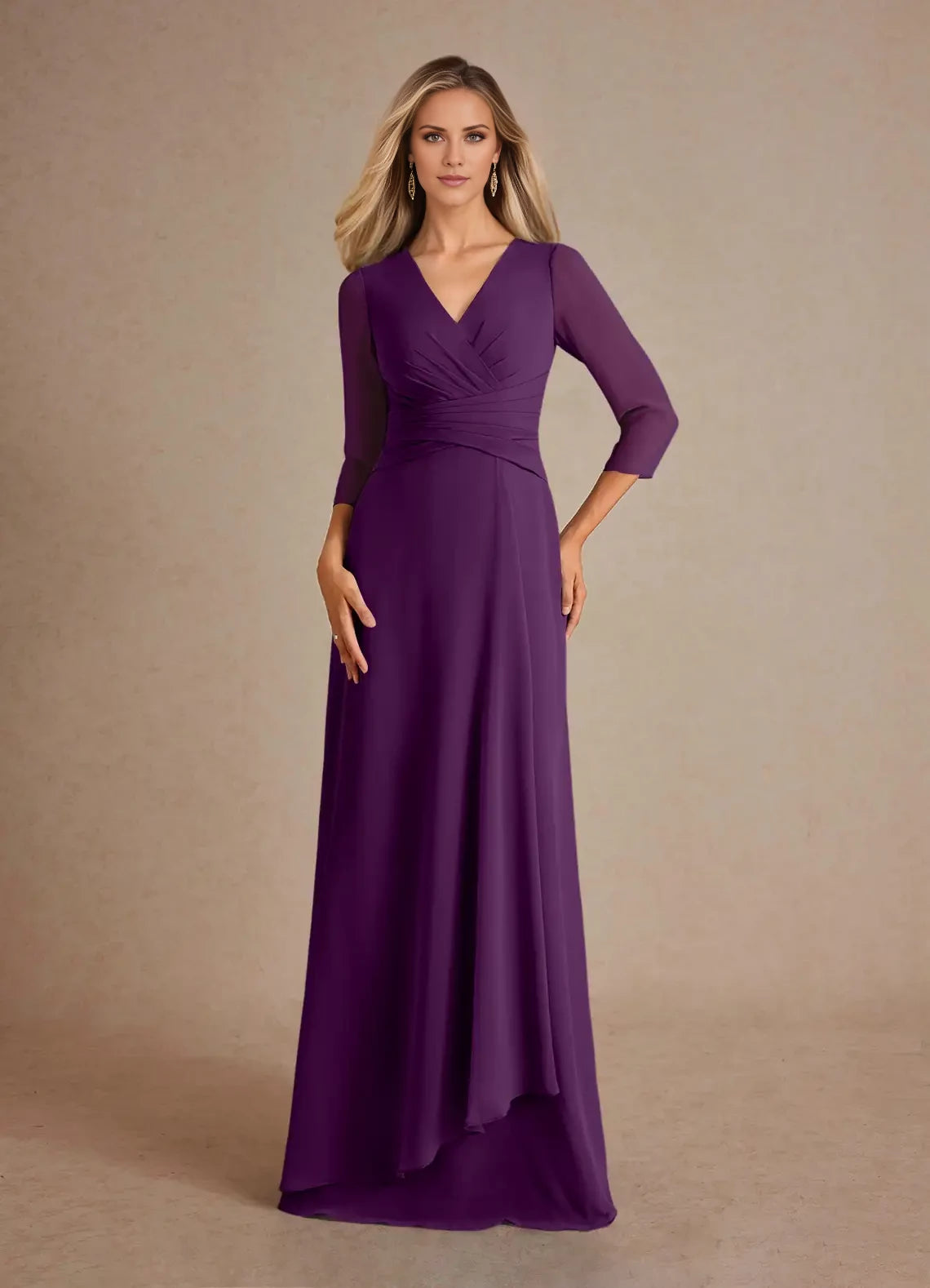 Elegant A-Line Pleated Chiffon Dress Designed for Mothers of the Bride
