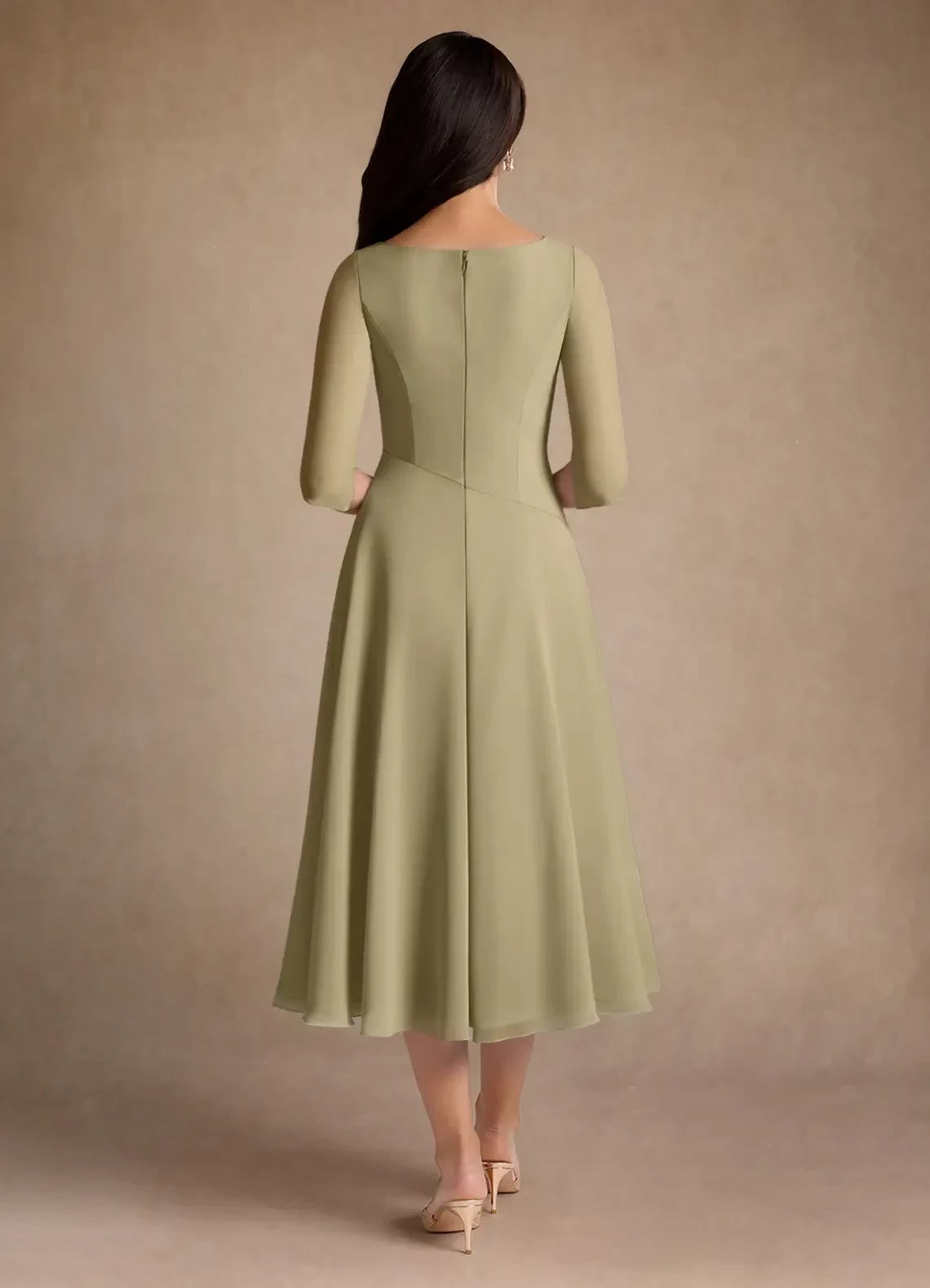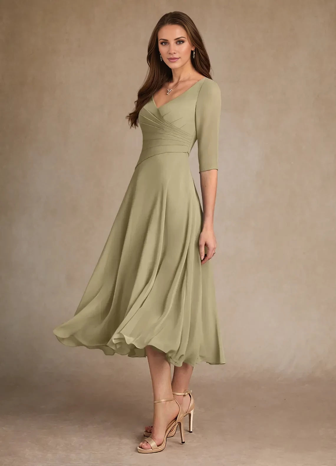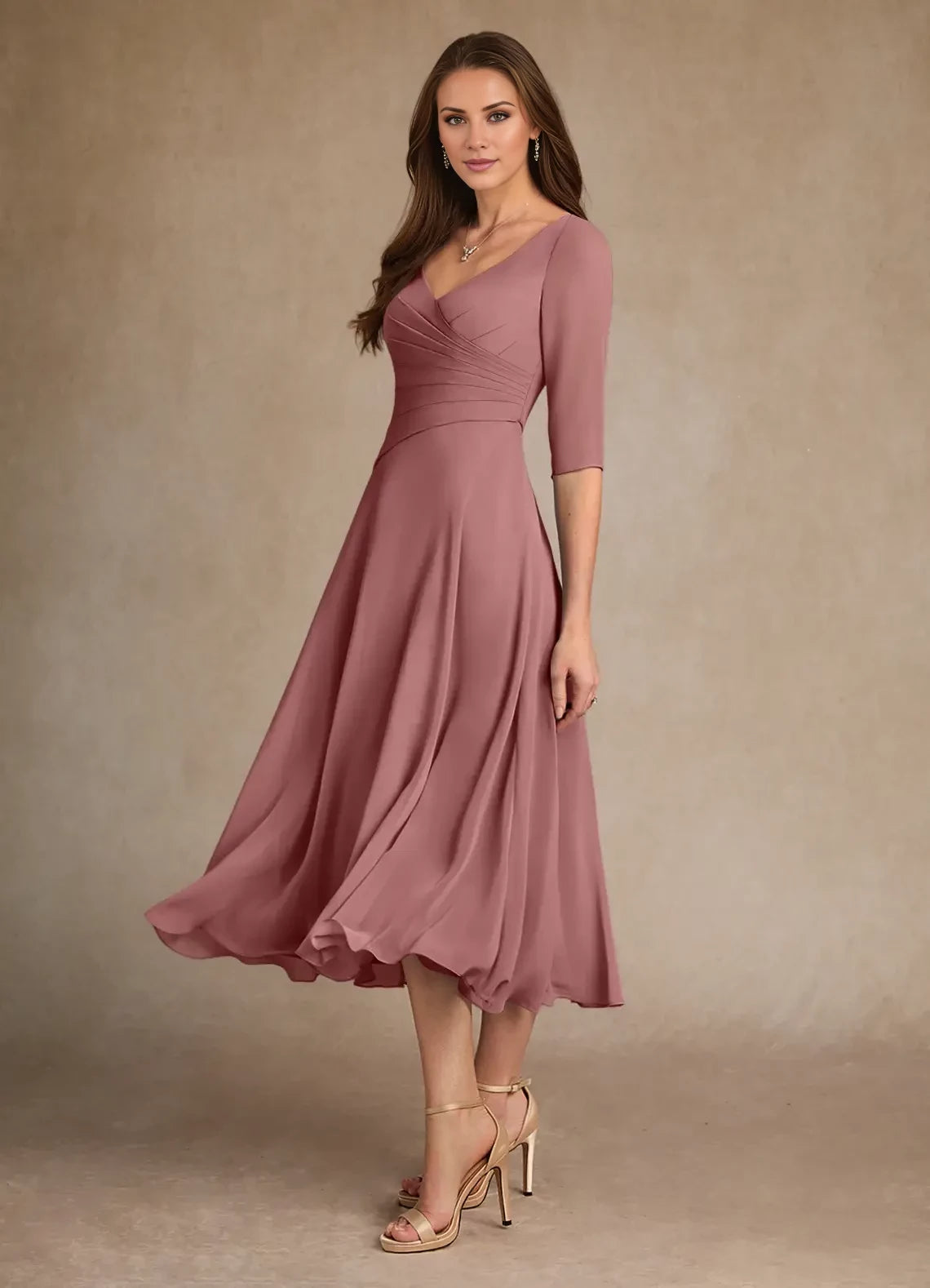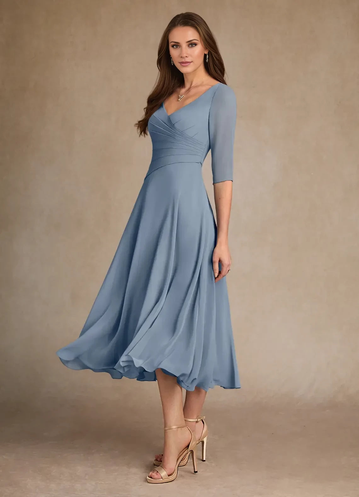 Elegant A-line chiffon dress with pleated detailing, designed specifically for mothers of the bride.