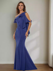 Elegant A-line princess dress featuring an asymmetric hem that falls gracefully to the ankle, designed specifically for mothers of the bride.