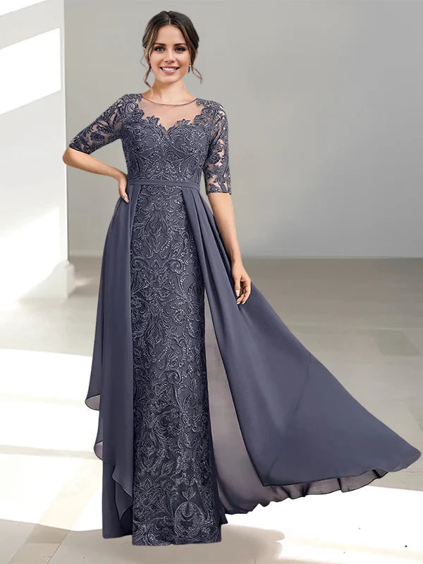A-Line/Princess Scoop 1/2 Sleeve Back Zip Floor-Length Mother of the Bride Dresses - Stormy / US 2 / UK 6 / EU 32