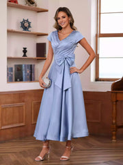 A-Line Princess V-Neck Short Sleeves Ankle-Length Ruffles Mother of the Bride Dresses - US 2 / UK 6 / EU 32