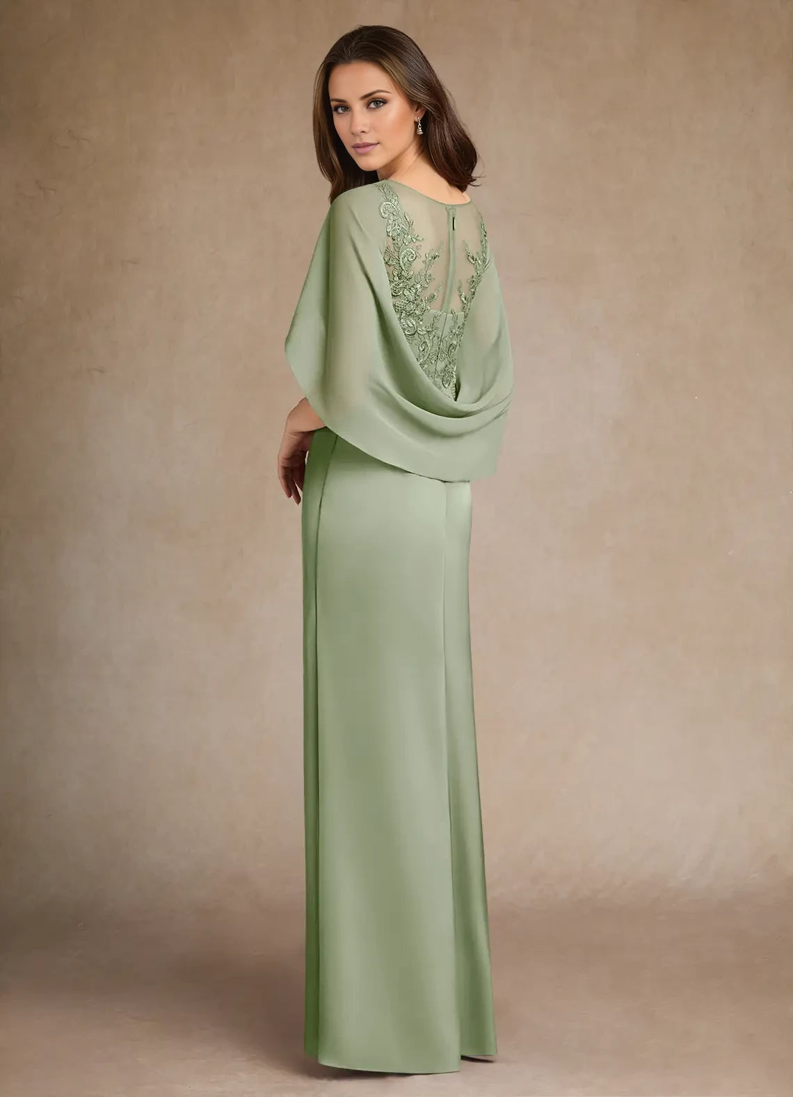 A-Line Split Fork Lace Satin Dress Mother of the Bride Dresses - Dusty Sage / US 2 / UK 6 / EU 32