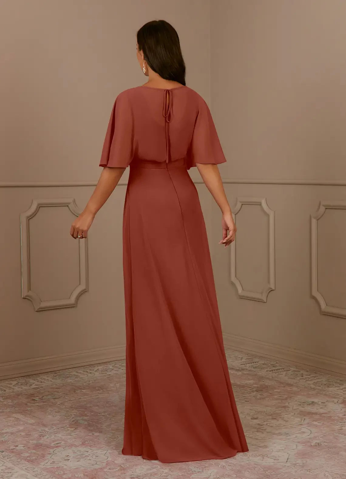 A-Line V-Neck Pleated Chiffon Dress Mother of the Bride Dresses - Auburn / US 2 / UK 6 / EU 32