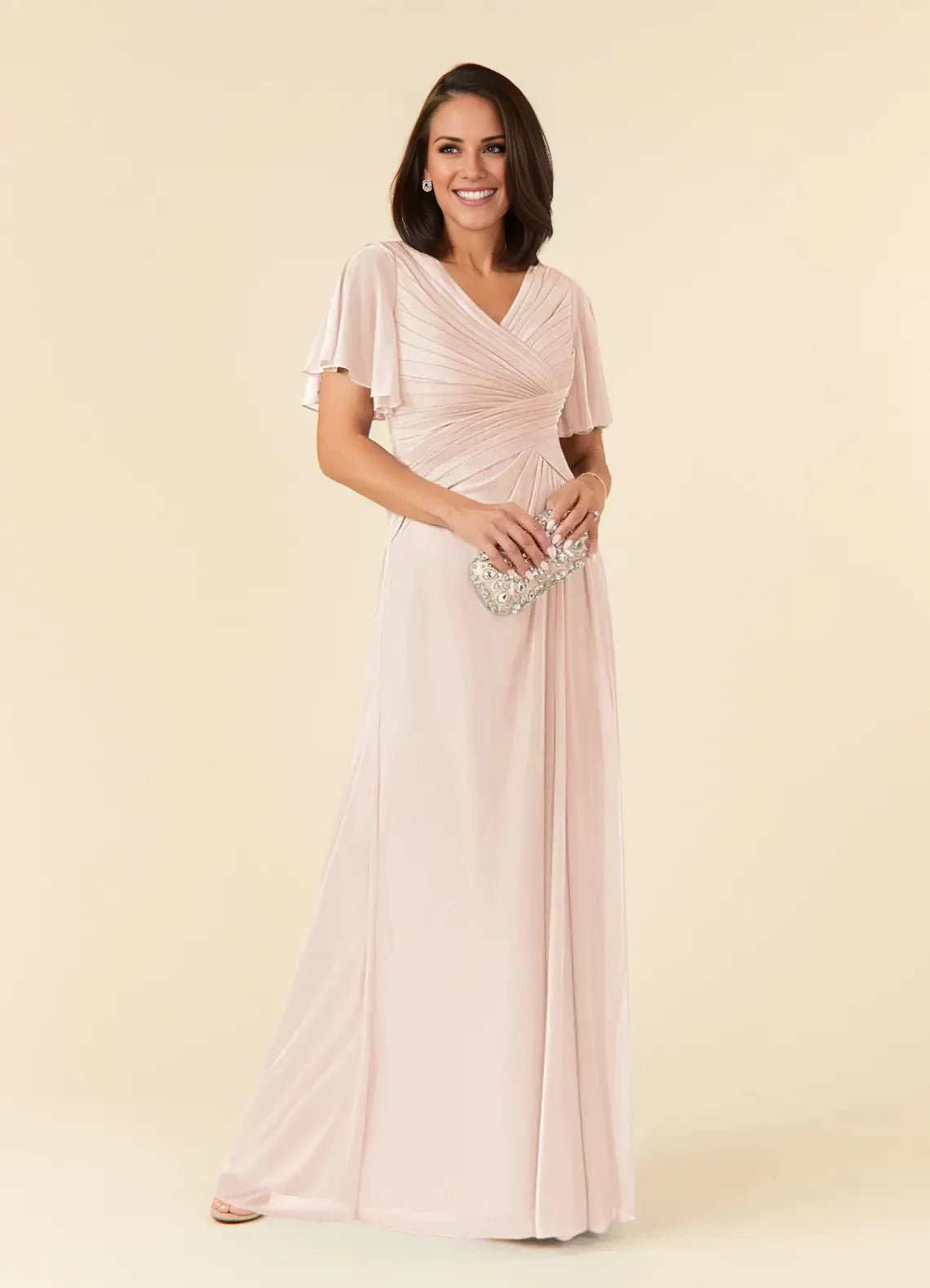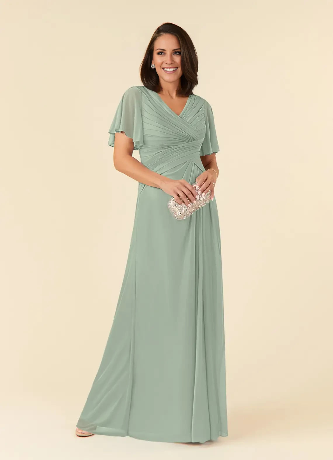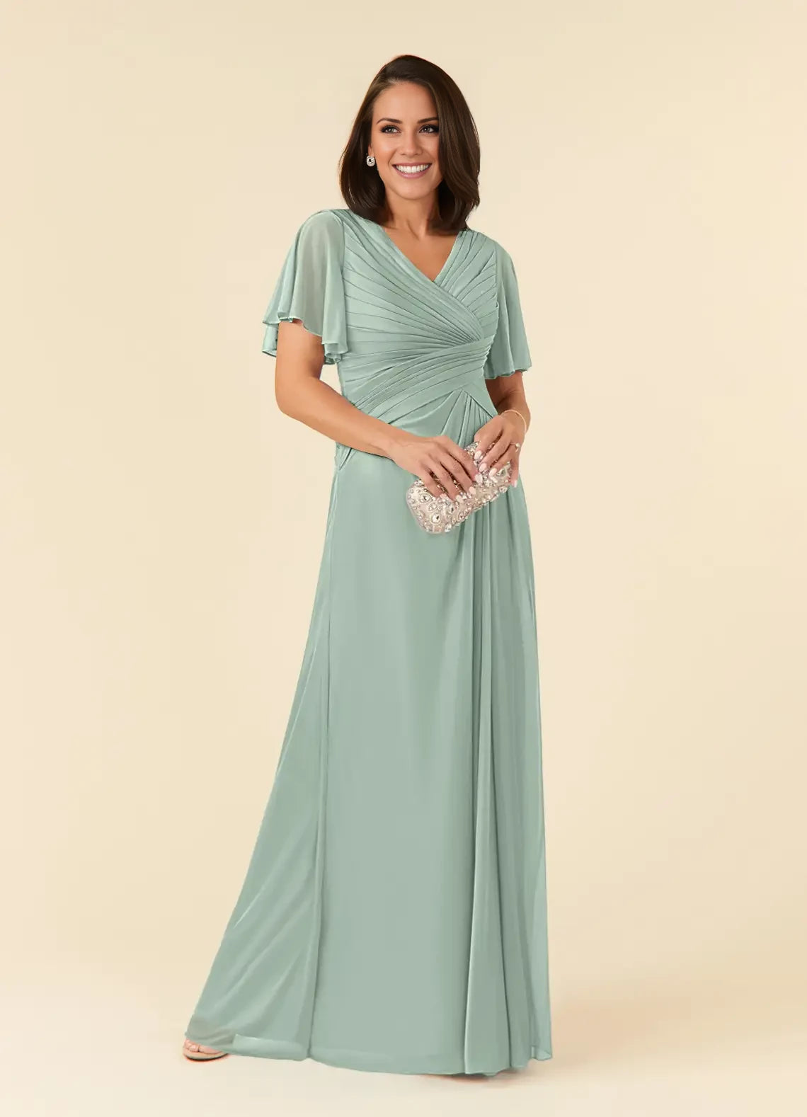 A-Line V-Neck Pleated Mesh Dress Mother of the Bride Dresses