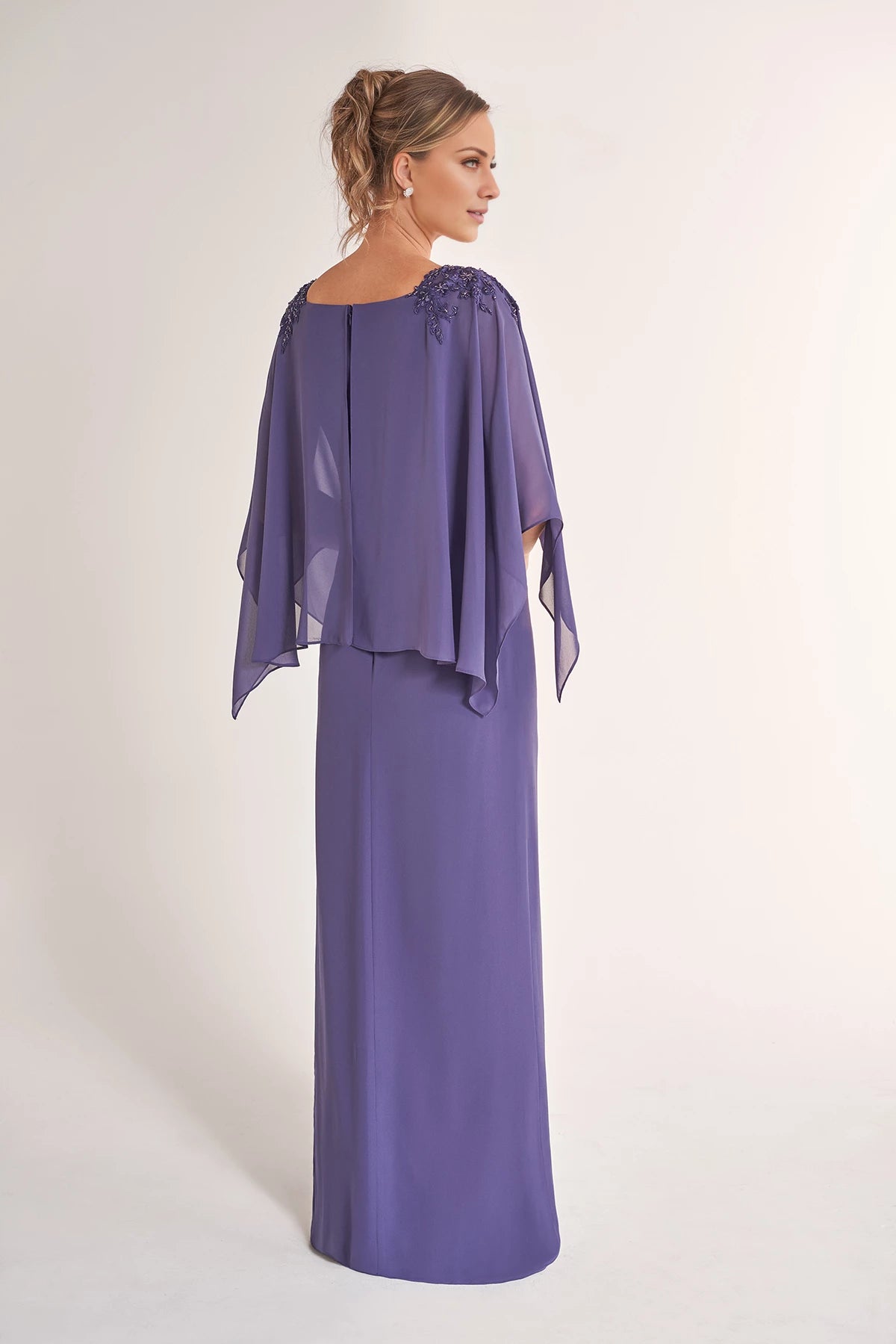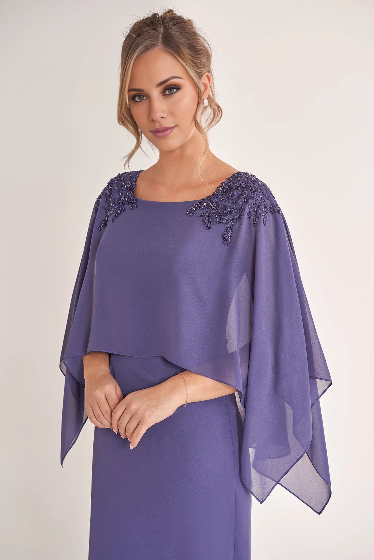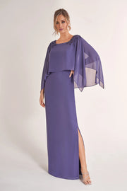 Classic Jade Chiffon Sheath Gown with Boat Neckline and Draped Top with Hand-Beaded Lace Appliques Mother of the Bride Dresses - US 2 / UK 6 / EU 32