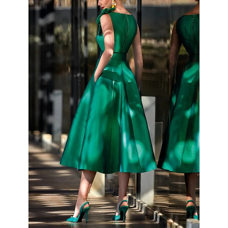 Elegant A - Line Plunging V - Neck Sleeveless Button Back Knee - Length Mother of the Bride Dresses