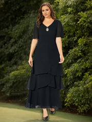 Elegant A - Line V - Neck Short Sleeve Zipper Back Floor - Length Mother of the Bride Dresses