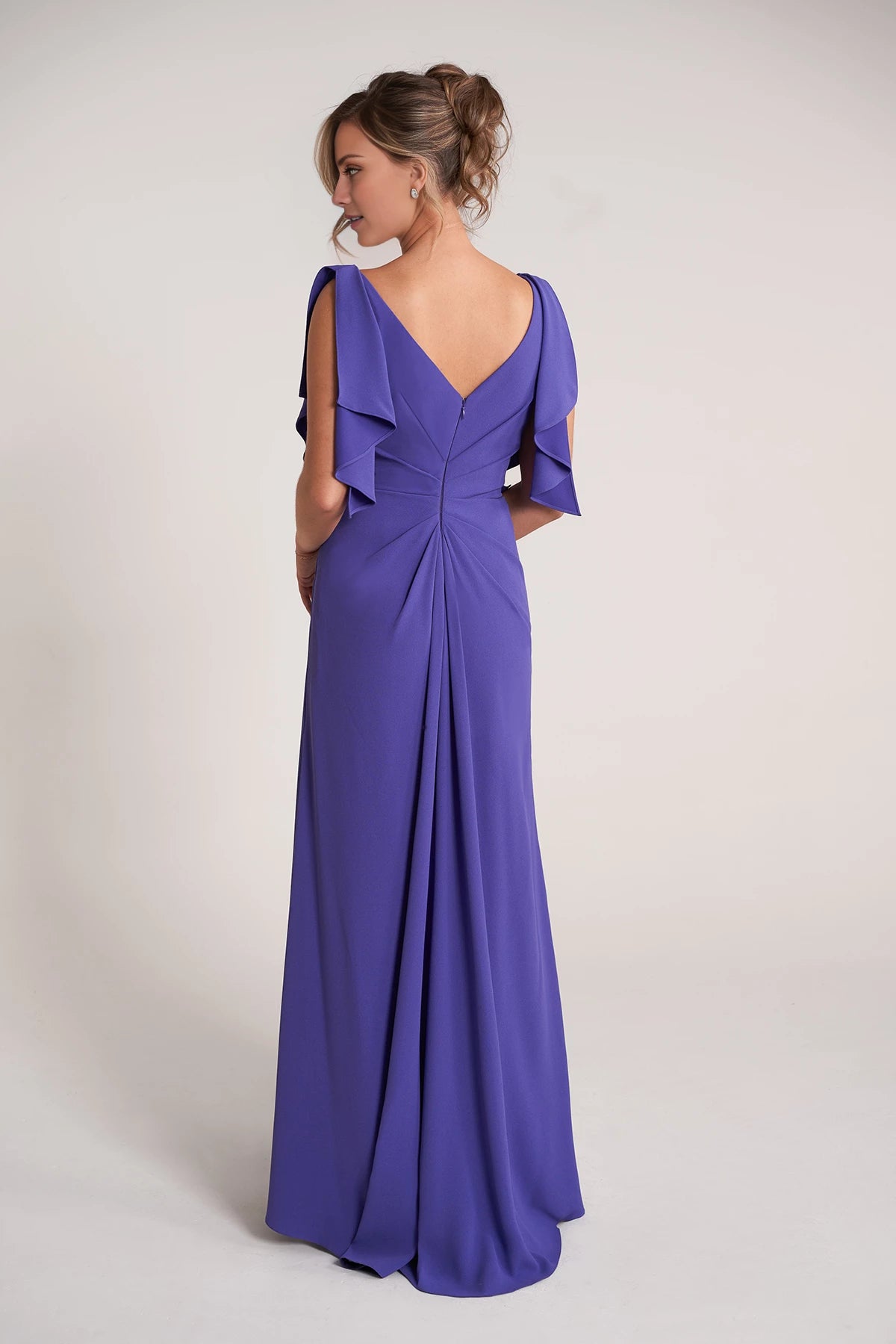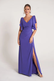 Elegant Fit and Flare Crepe Gown with V-Neckline and Soft Flutter Sleeves Mother of the Bride Dresses - US 2 / UK 6 / EU 32