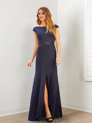 Elegant Mermaid Boat Neck Cap - Sleeve Zipper Back Floor - Length Mother of the Bride Dresses