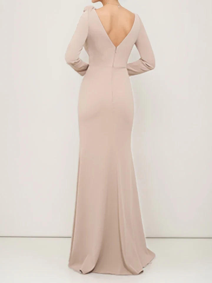 Elegant Mermaid Boat Neck Long - Sleeve Plunging Back Floor - Length Mother of the Bride Dresses