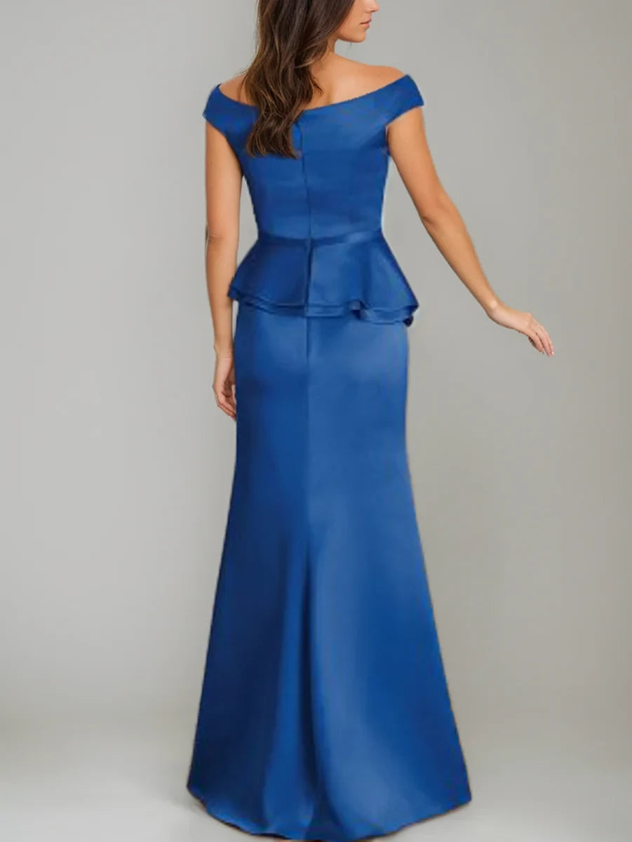 Elegant Mermaid Off - Shoulder Cap Sleeve Zipper Back Floor - Length Mother of the Bride Dresses