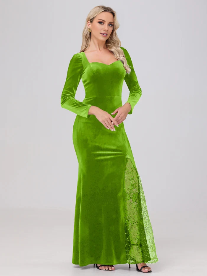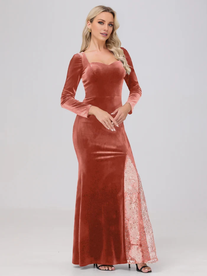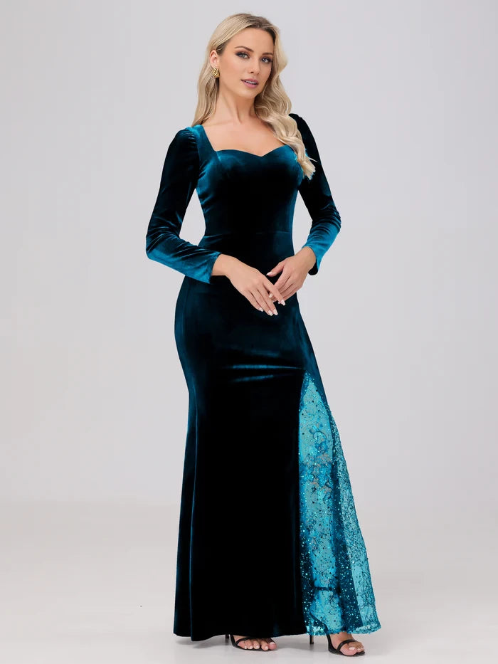 Elegant Sweetheart Long Sleeves Patchwork Sequin Lace Velvet Mother of the Bride Dresses