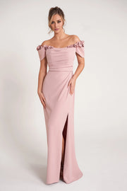 Fit and Flare Gown with Softly Gathered Bodice and 3D Shoulder Flowers Mother of the Bride Dresses - US 2 / UK 6 / EU 32