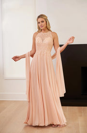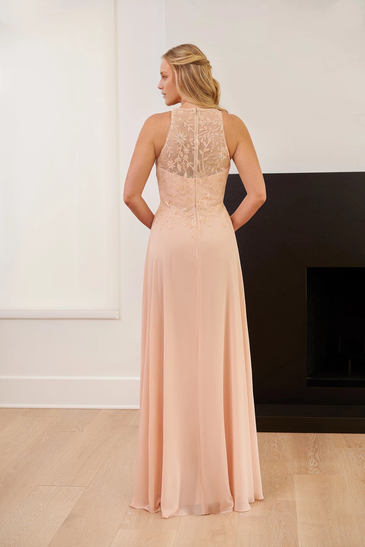This elegant A-line gown features a flattering V-neckline, designed specifically for mothers of the bride seeking a sophisticated and timeless look.