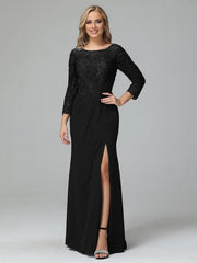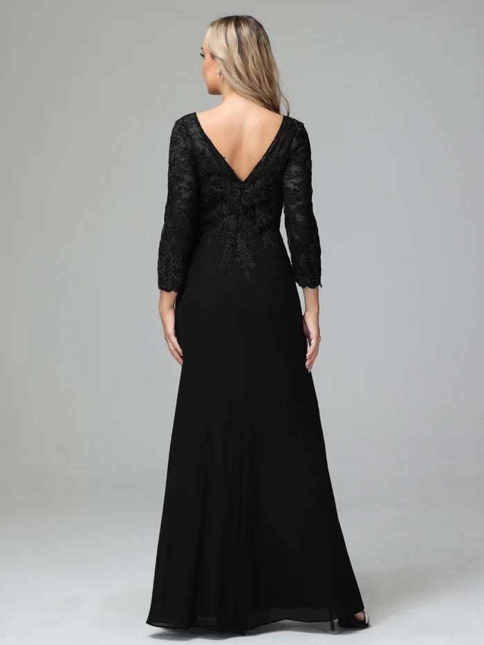 Long Sleeves Floor Length Chiffon LaceMother of the Bride Dresses - Black / US 2 / UK 6 / EU 32