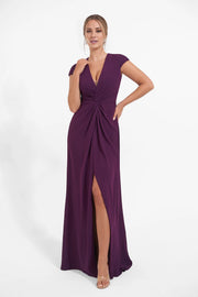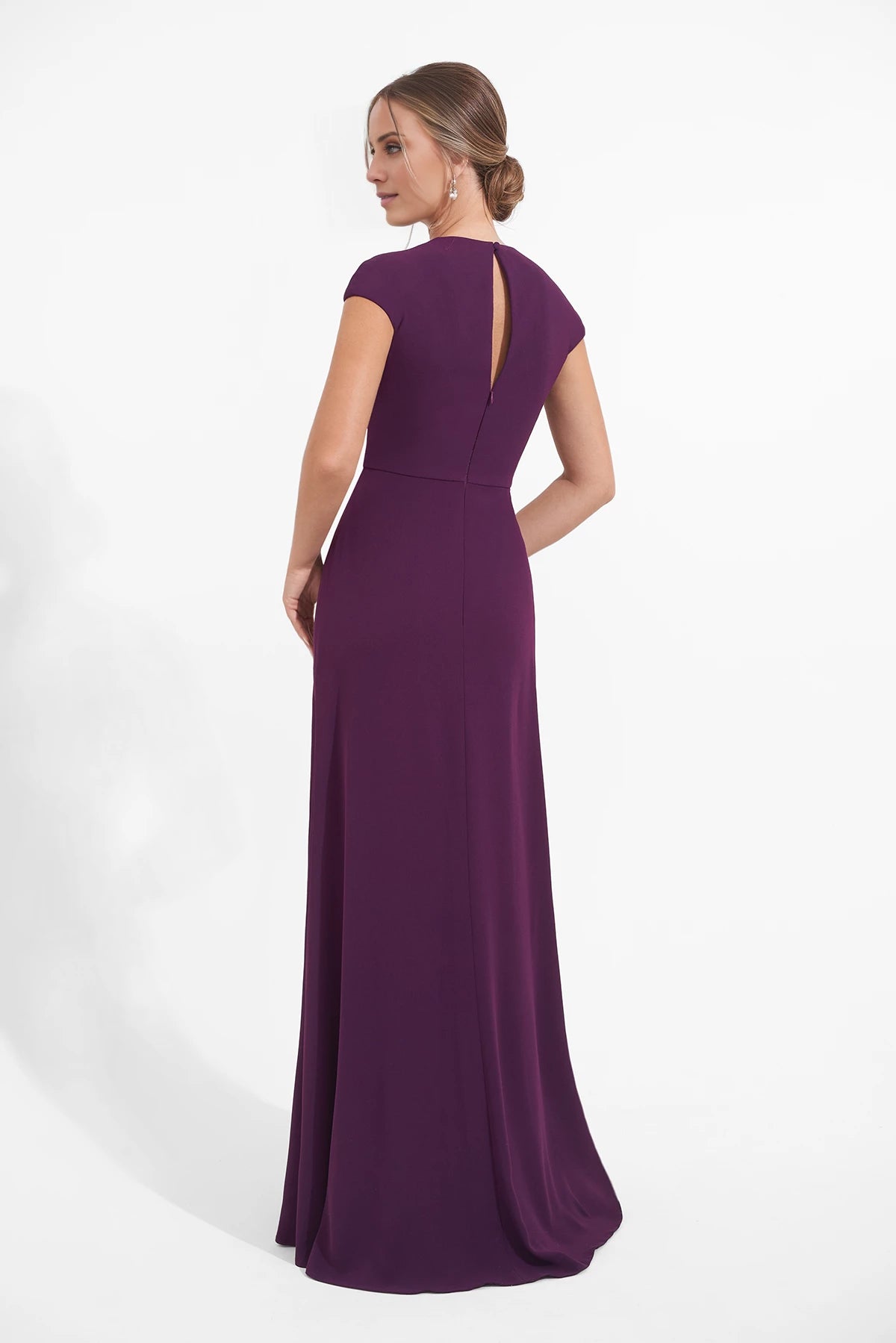 Modern Fit and Flare Soft Crepe Gown with Twist Waistline and Cap Sleeves Mother of the Bride Dresses - US 2 / UK 6 / EU 32