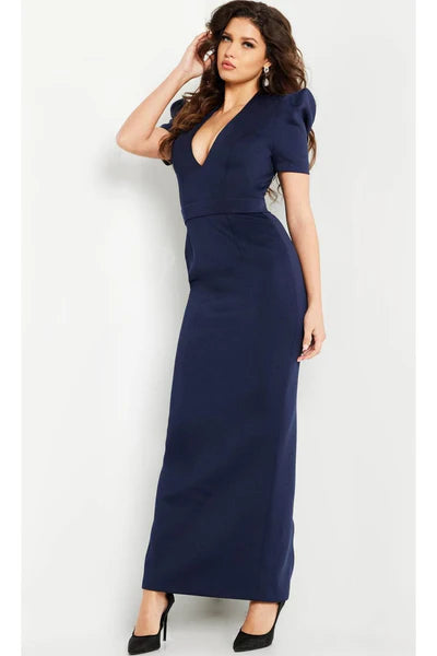 Navy Elegant Puff Sleeve Column Gown Mother of the Bride Dresses - US 2 / UK 6 / EU 32
