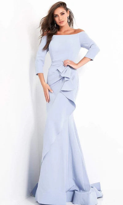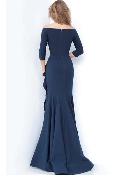 Off Shoulder long sleeve Drape Crepe Mother of the Bride Dresses - Navy / US 2 / UK 6 / EU 32