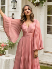 Pleated Chiffon Long Sleeves Mother of the Bride Dresses - Dusty Rose / US 2 / UK 6 / EU 32