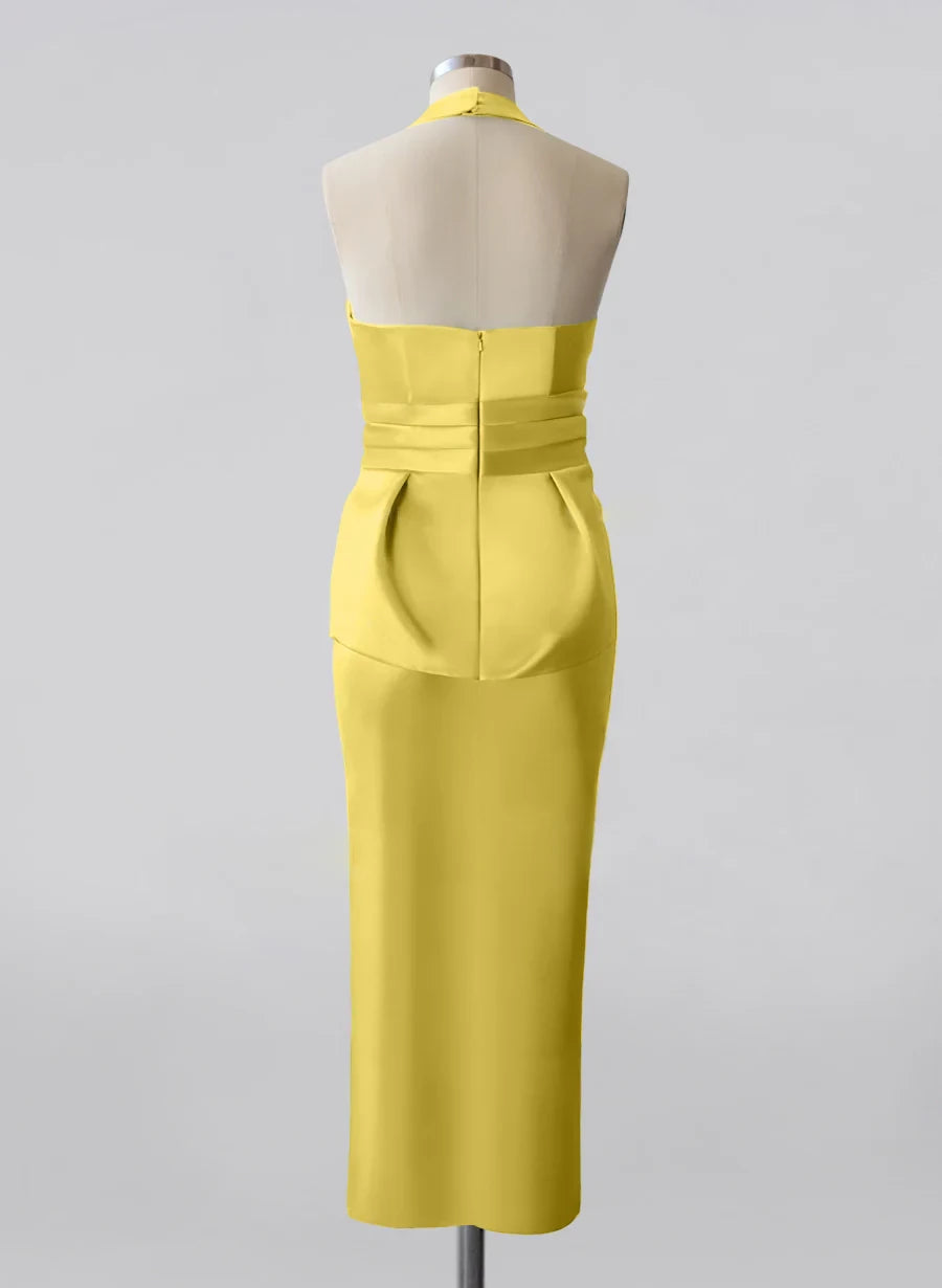 Sheath/Column Halter Sleeveless Ankle-Length Mother of the Bride Dresses with Bowknot - Yellow / US 2 / UK 6 / EU 32