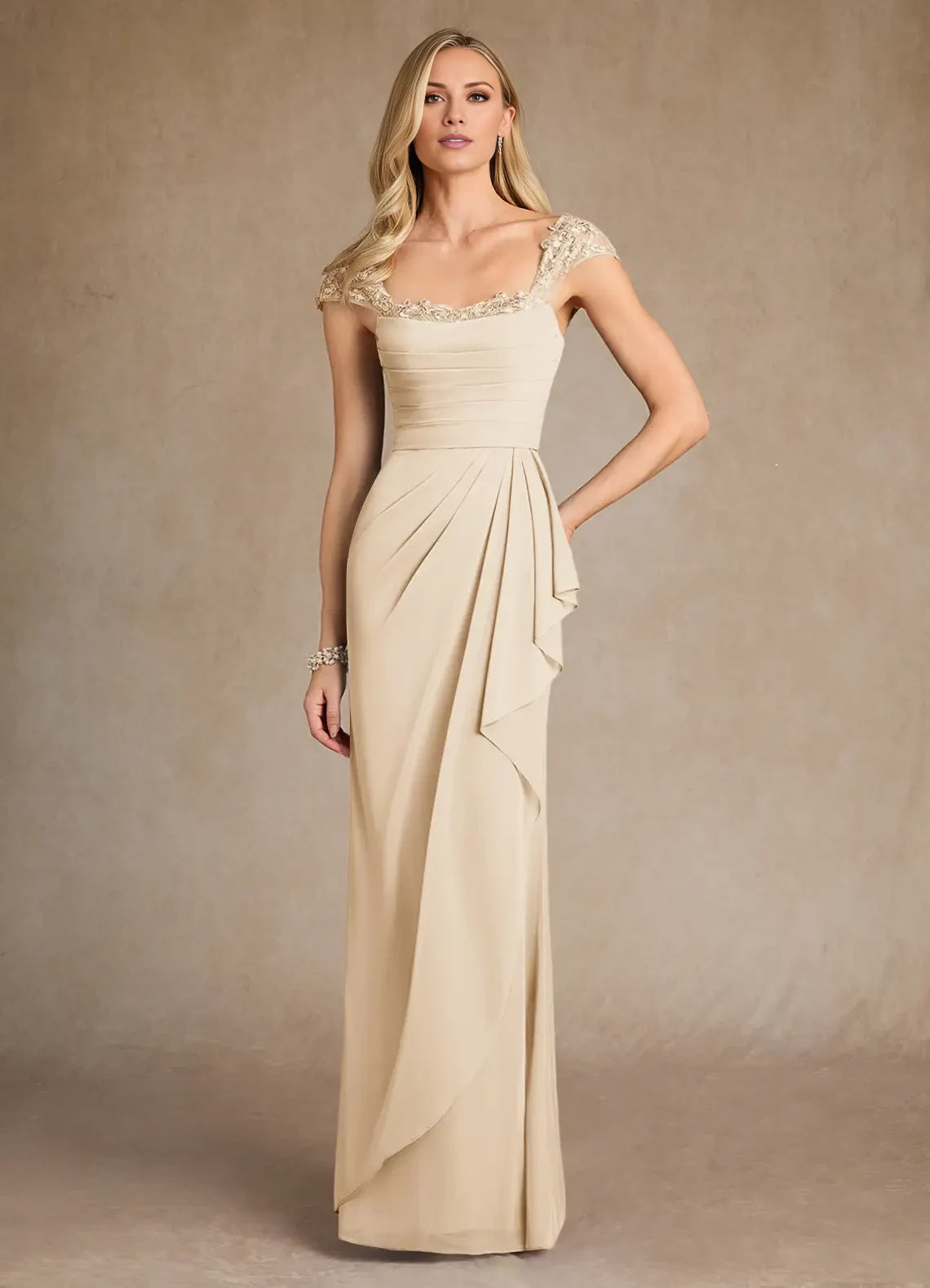 Sheath Lace Mesh Ruffled Dress Mother of the Bride Dresses - champagne / US 2 / UK 6 / EU 32
