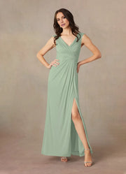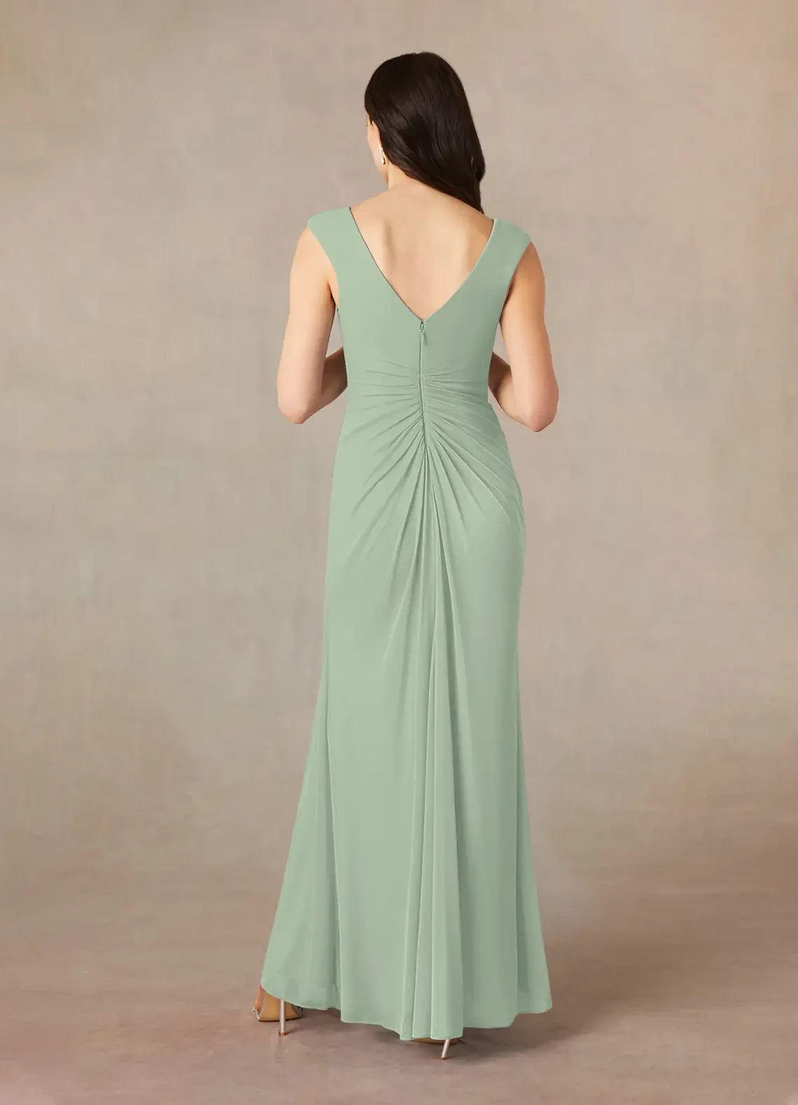 Simple V Neck Sleeveless Back Zip Floor-Length Side Slit Mother of the Bride Dress - Dusty Sage / US 2 / UK 6 / EU 32