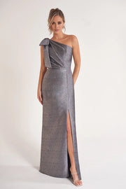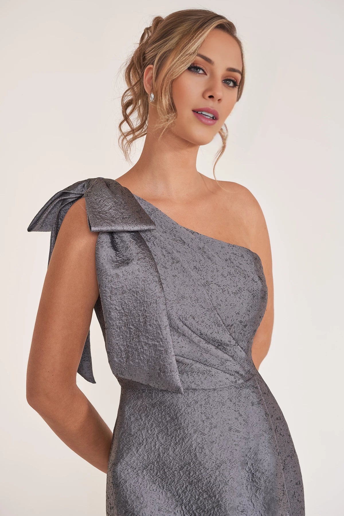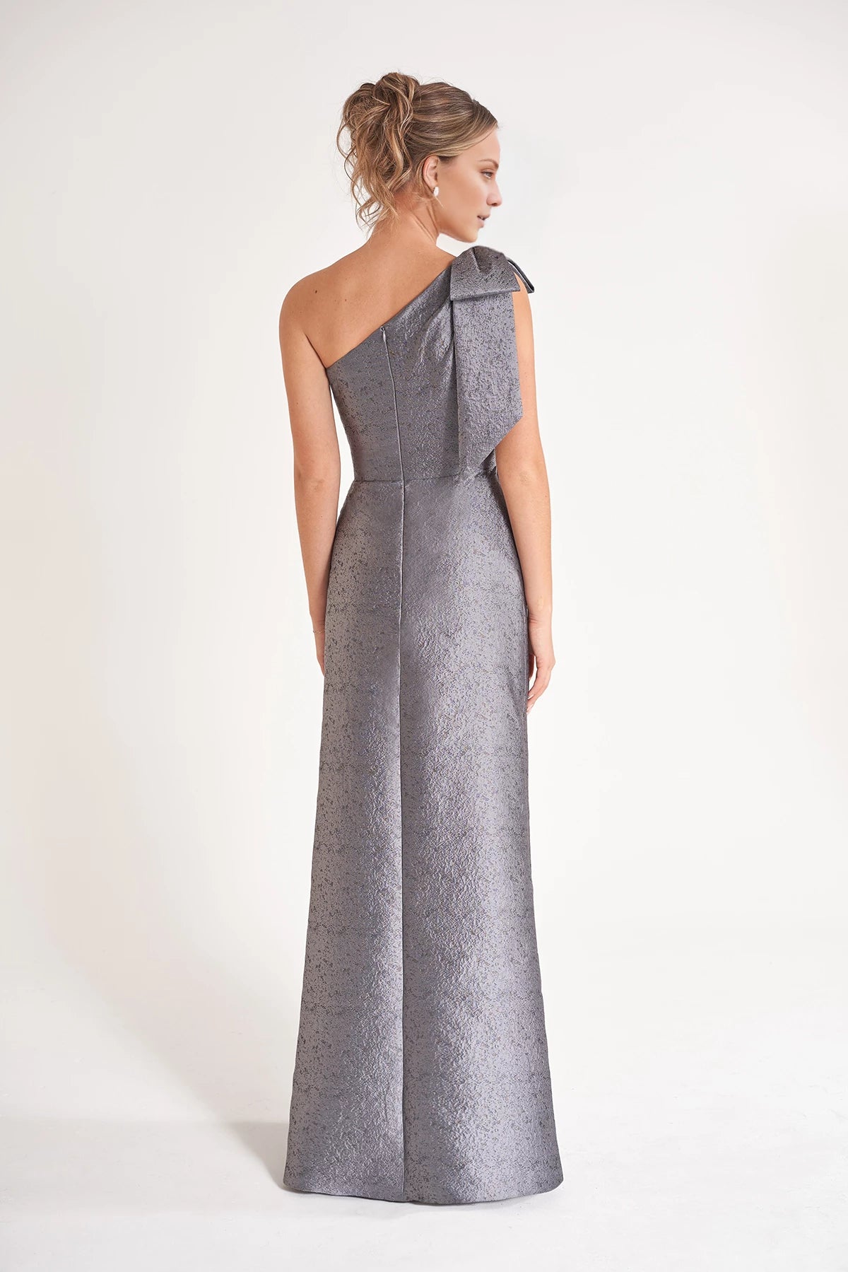 Sleek Georgia Jacquard Sheath Gown with One Shoulder Neckline and Accented Bow Mother of the Bride Dresses - US 2 / UK 6 / EU 32