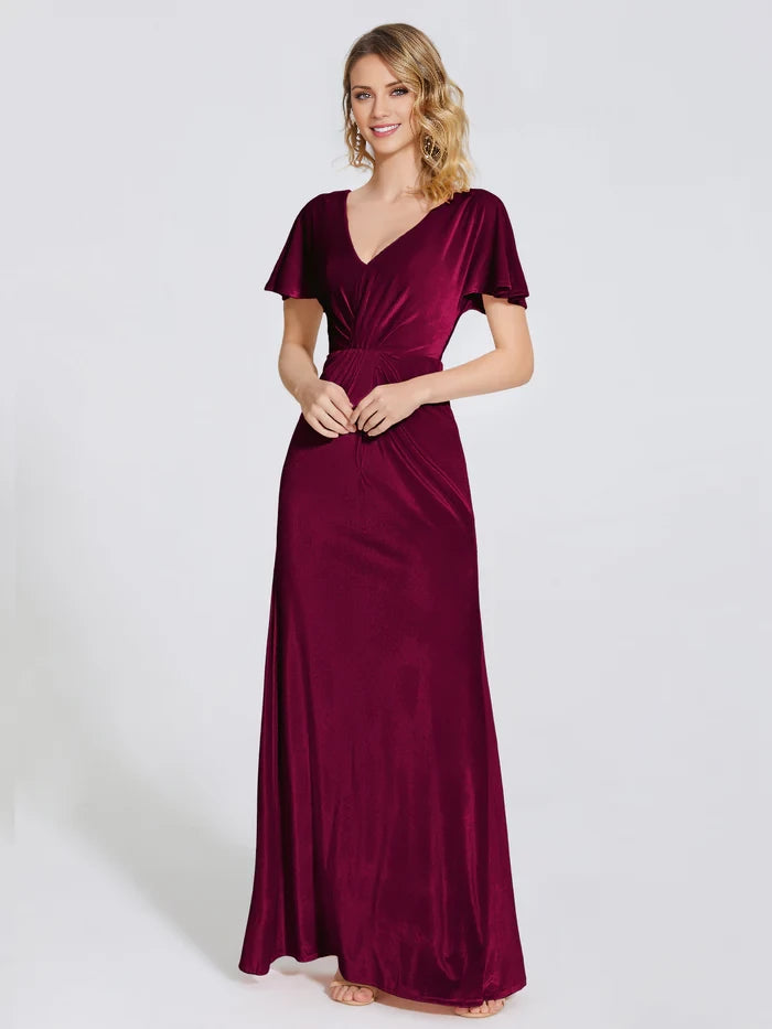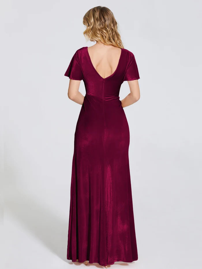 Summer Sheath Short Sleeves Velvet Mother of the Bride Dresses - Burgundy / US 2 / UK 6 / EU 32