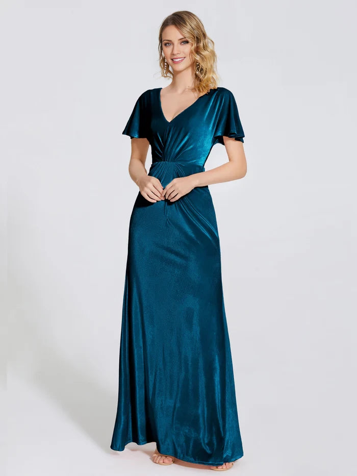 Summer Sheath Short Sleeves Velvet Mother of the Bride Dresses