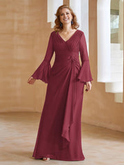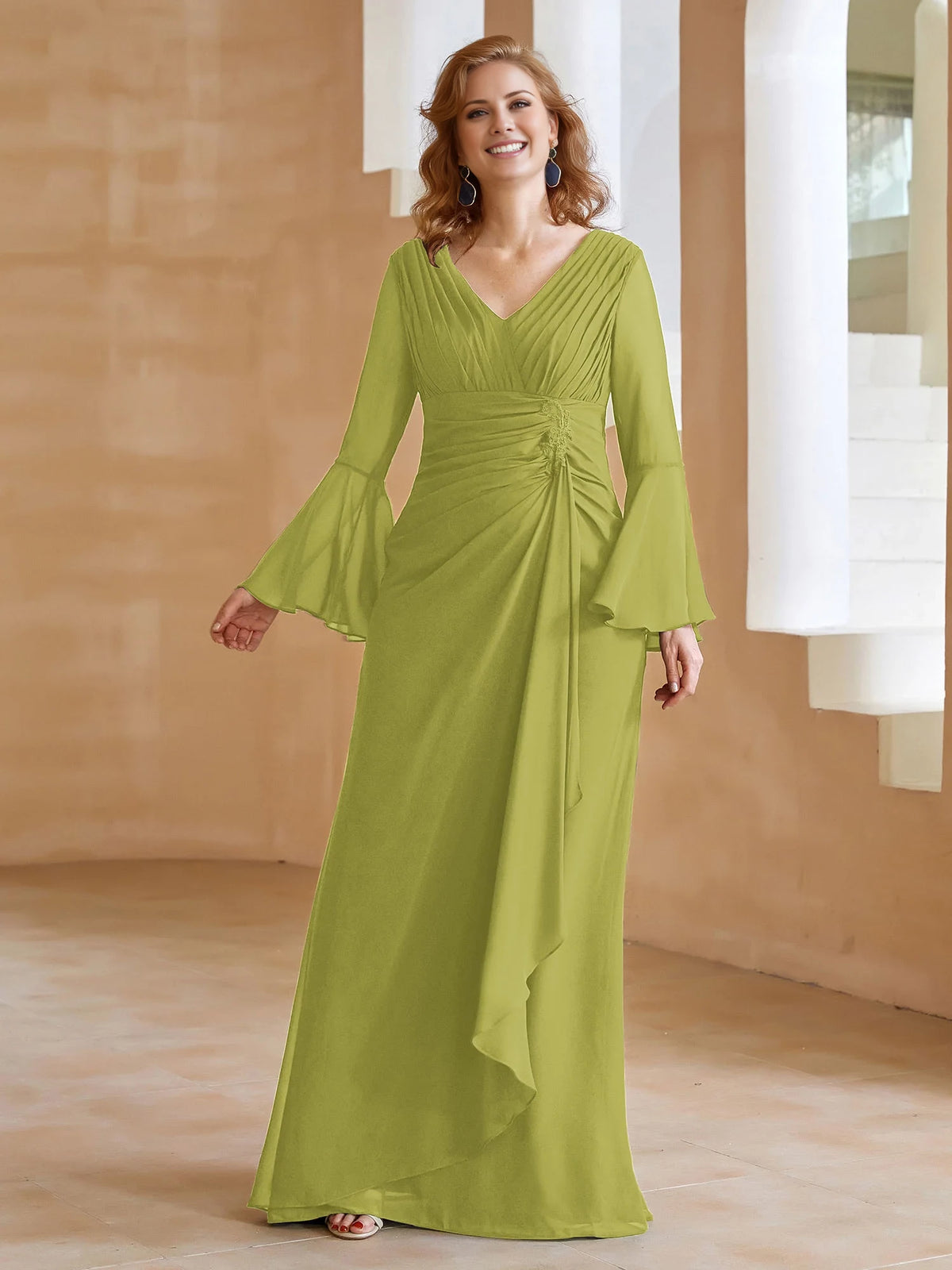 V Neck Pleated Floor-Length Dress Mother of the Bride Dresses