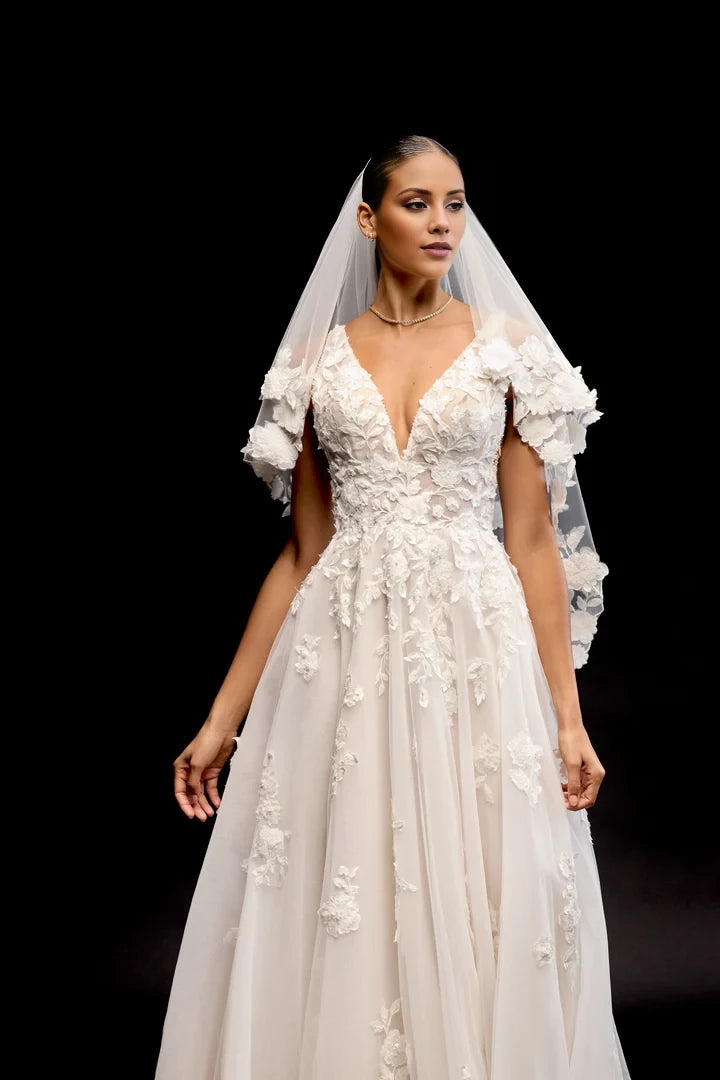 A-Line Lace Gown with Illusion Bodice and 3D Lace Appliqués Wedding Dresses - US 2 / UK 6 / EU 32