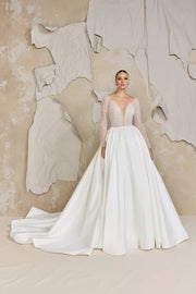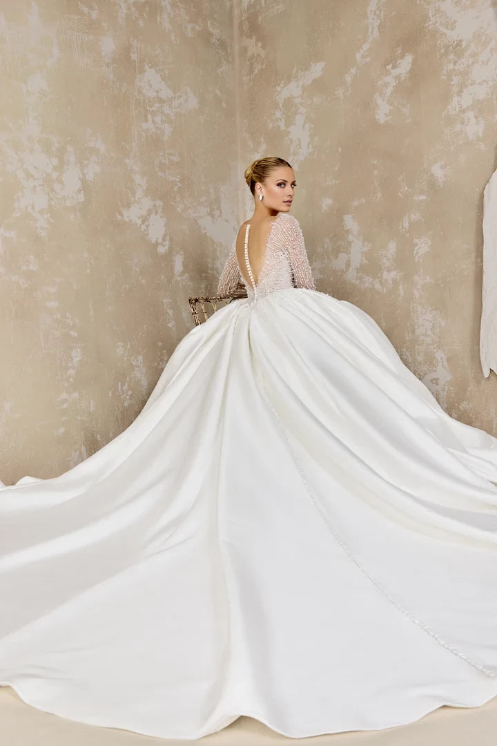 Ball Gown with Beaded Plunging Sabrina Neckline Wedding Dresses