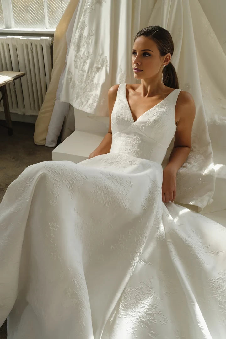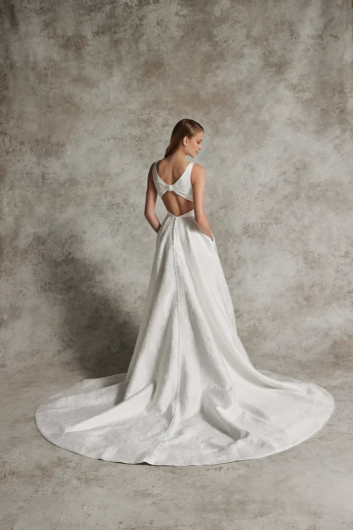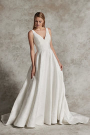 Brocade Ball Gown with Modest V-Neckline and Keyhole Back Wedding Dresses - US 2 / UK 6 / EU 32