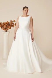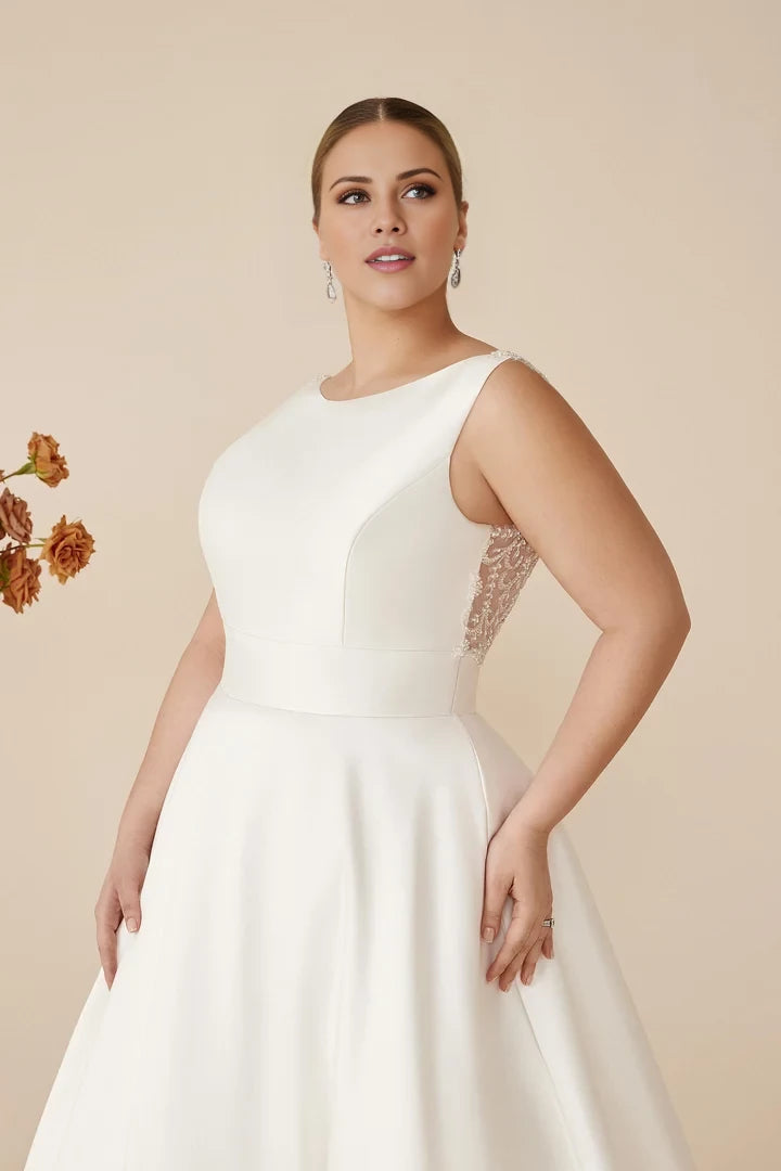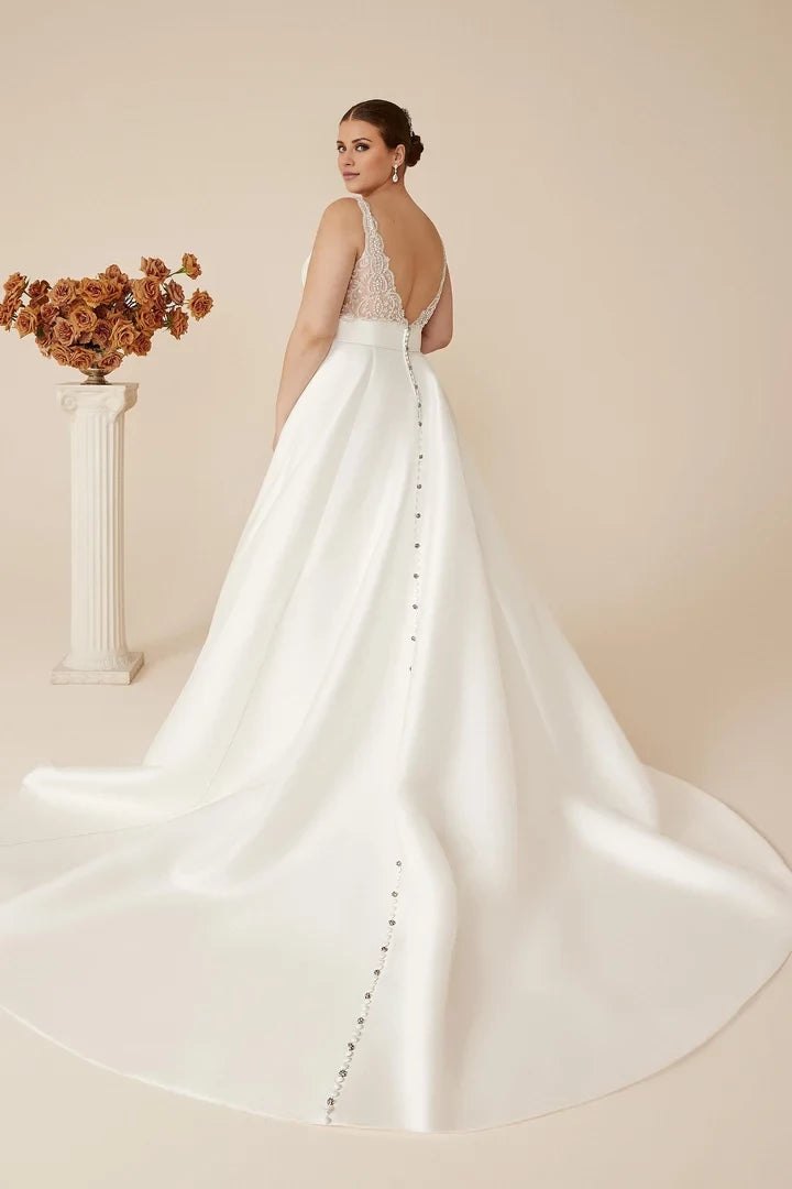 Sophisticated Plus Size Ball Gown Wedding Dress with an Intricately Beaded V-Back Detail