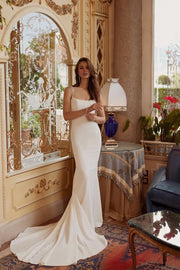 Crepe Fit and Flare Wedding Dress with Beaded Illusion Back Wedding Dresses