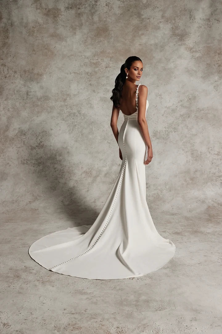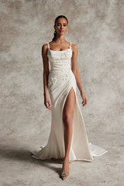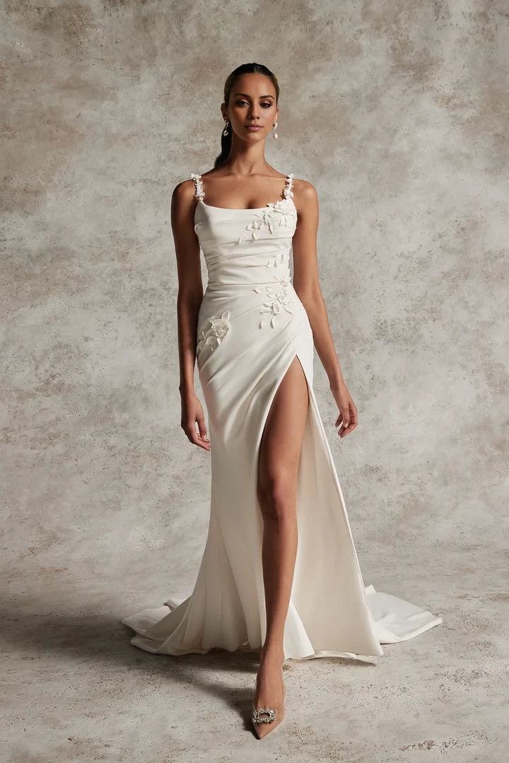 Crepe Fit and Flare Wedding Gown with 3D Floral Appliqués Wedding Dresses - US 2 / UK 6 / EU 32