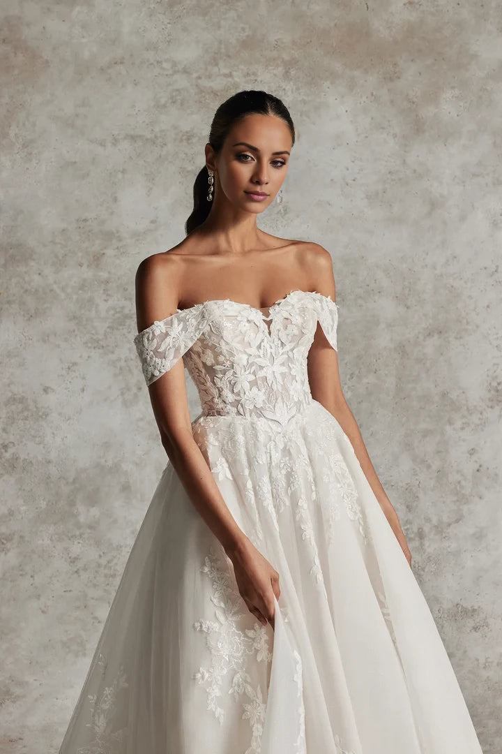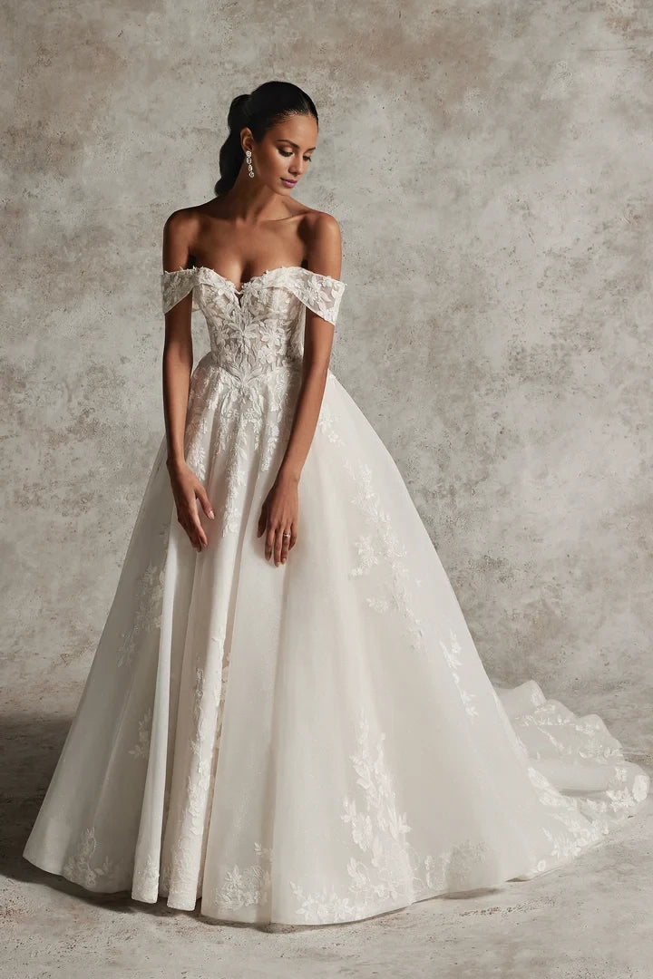 Beaded Off-the-Shoulder Ball Gown with Allover Sparkle Wedding Dresses - US 2 / UK 6 / EU 32