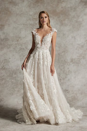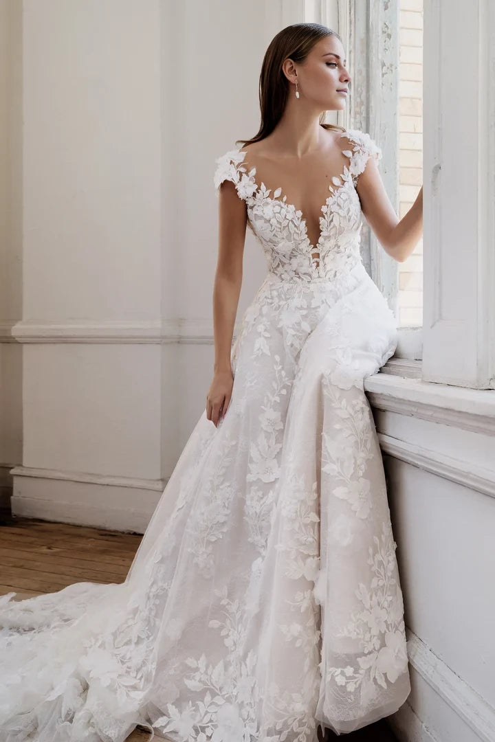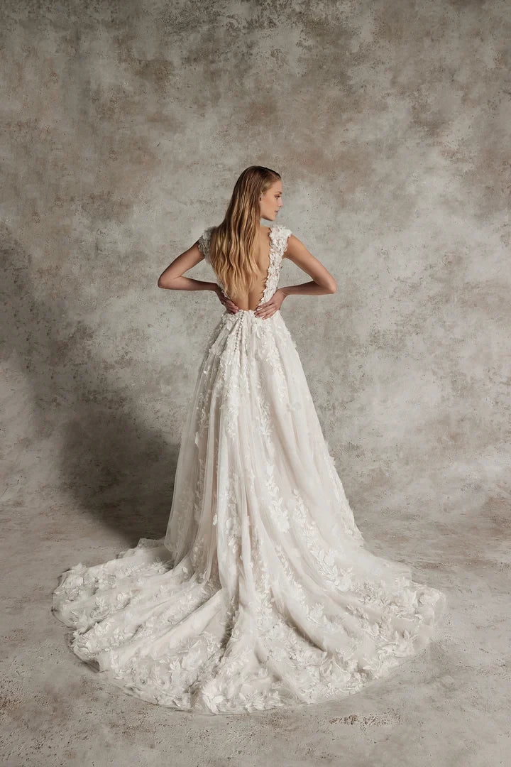 Lace A-Line Wedding Gown with 3D Appliqués and Low Back Wedding Dresses - US 2 / UK 6 / EU 32
