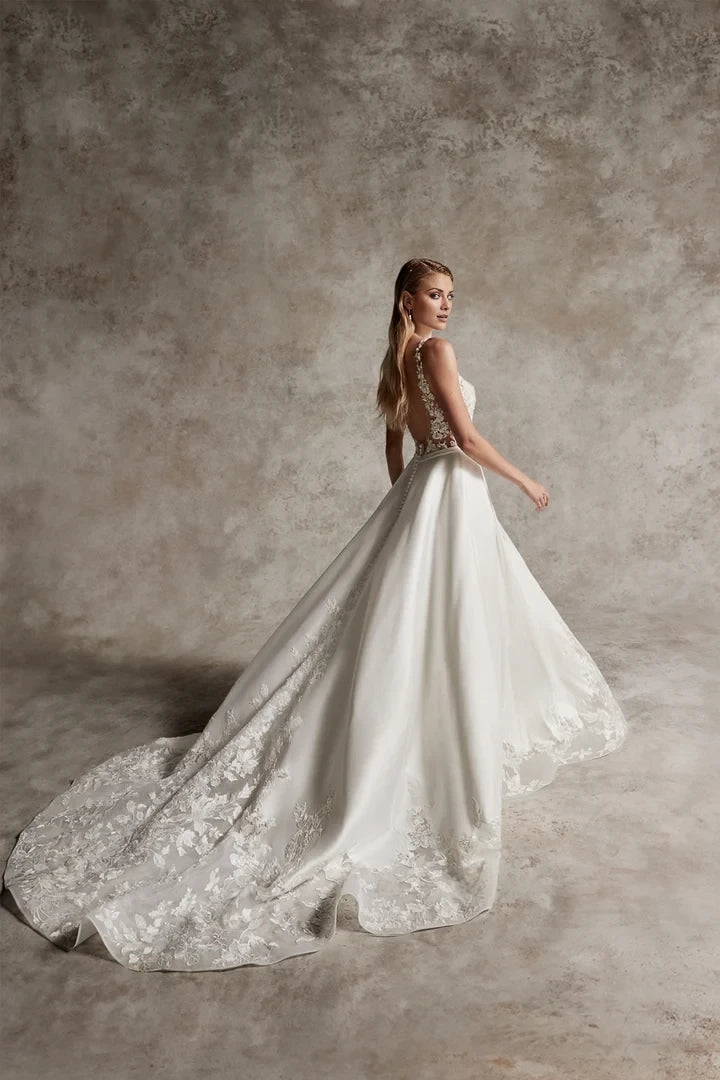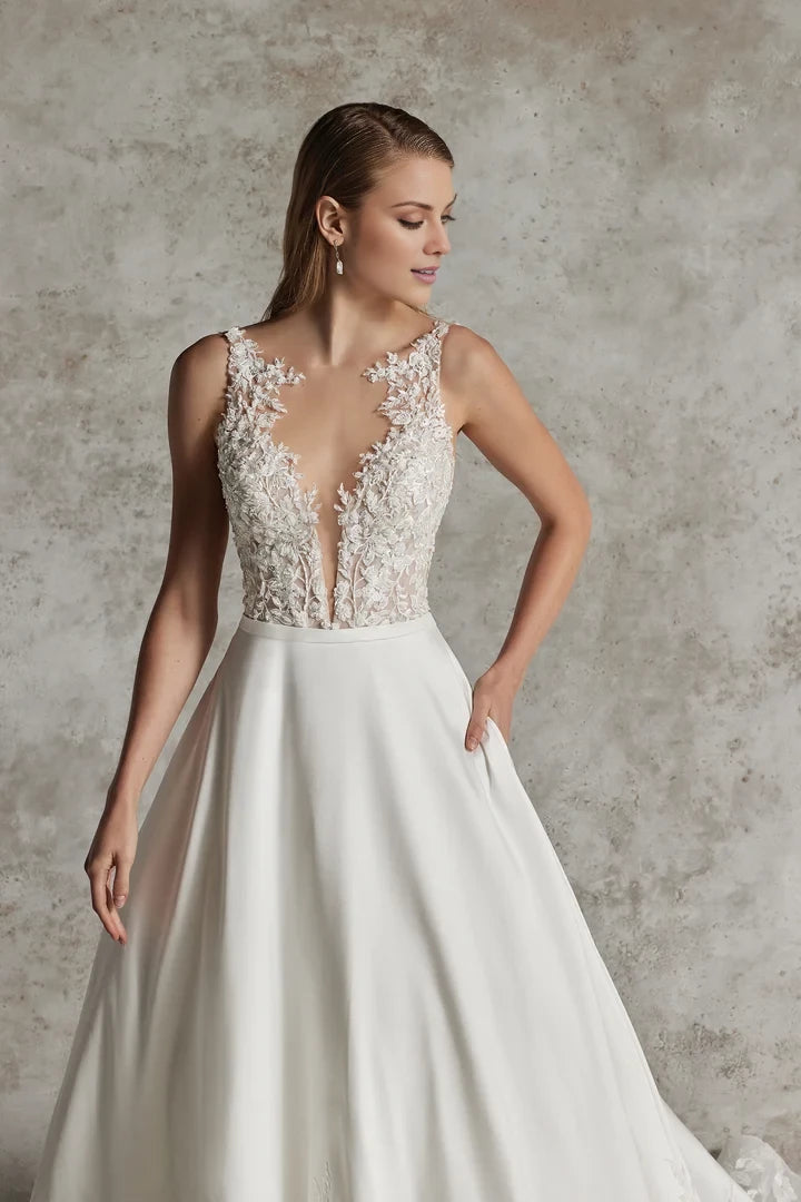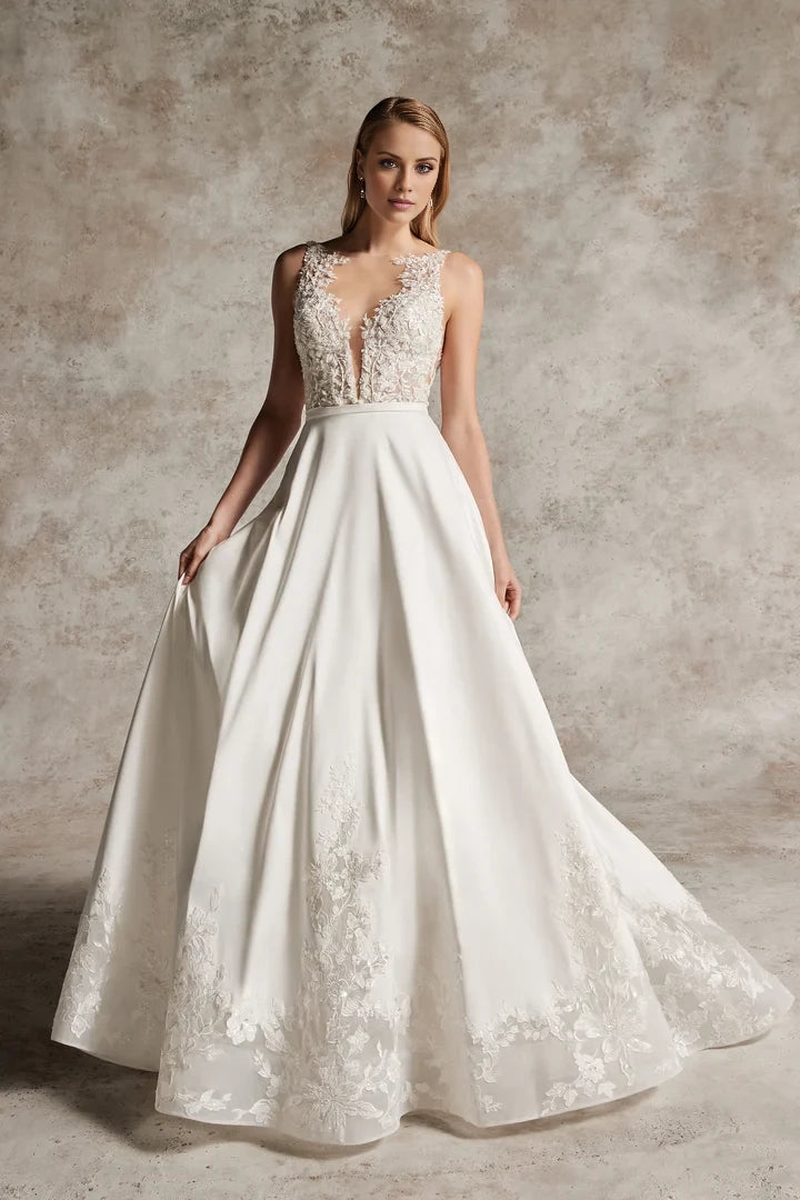 Lace A-Line Wedding Gown with Illusion Neckline Wedding Dresses - US 2 / UK 6 / EU 32