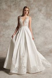 Lace A-Line Wedding Gown with Illusion Neckline Wedding Dresses