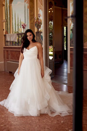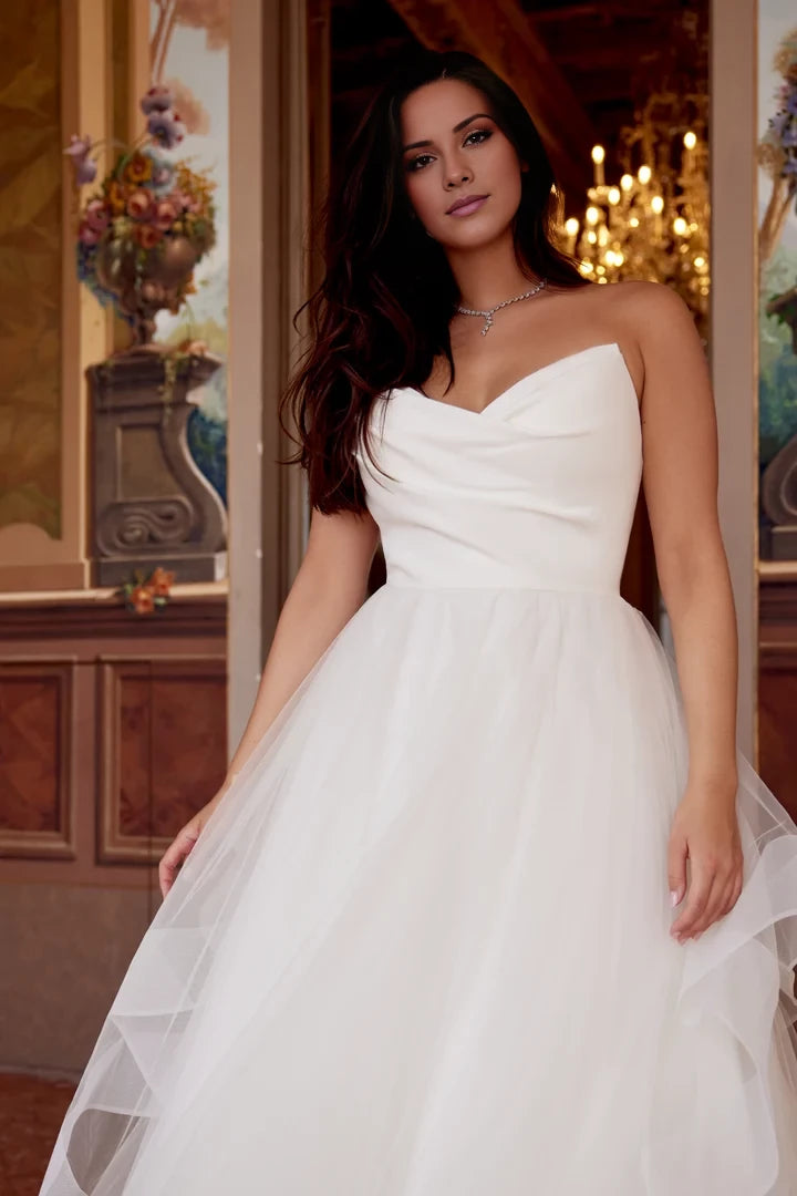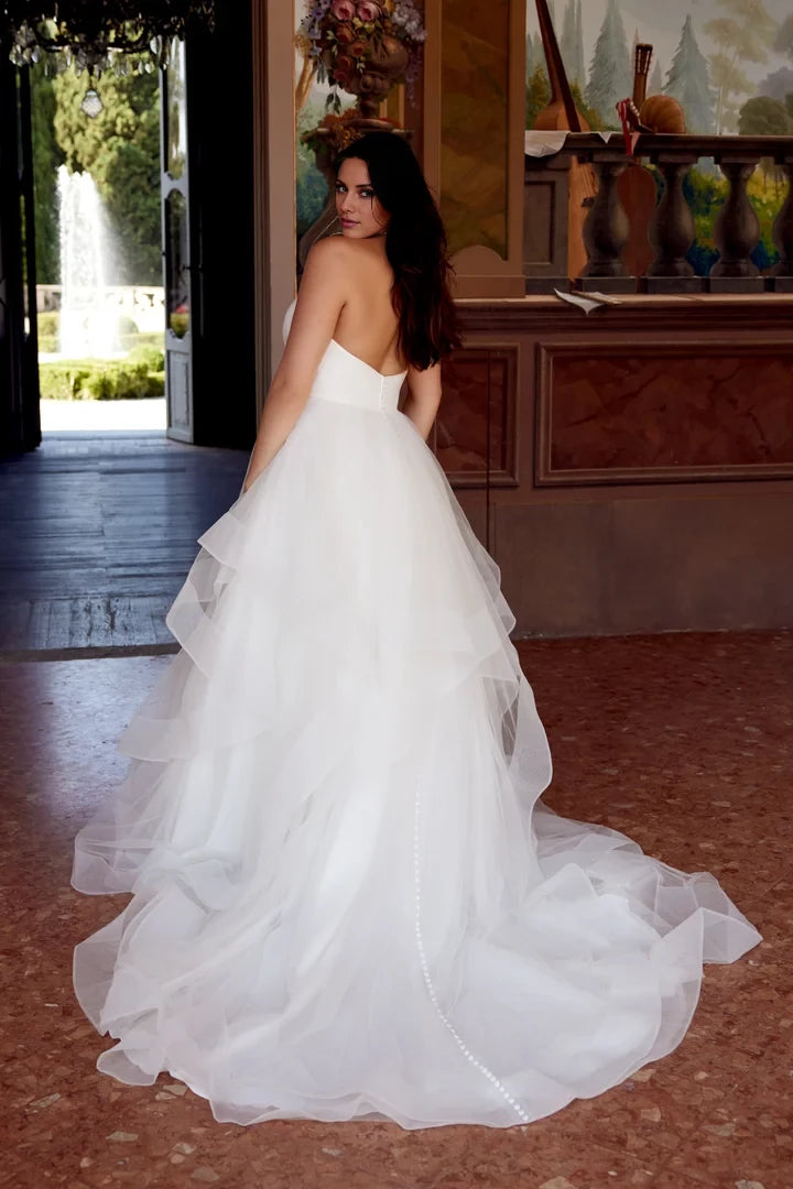 Plus Size Gown with Tulle Ruffle Skirt and Strapless Satin Bodice Wedding Dresses - US 2 / UK 6 / EU 32