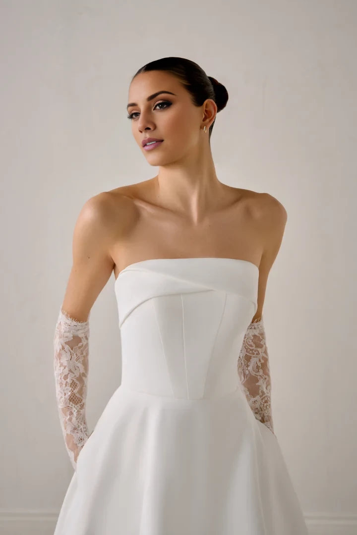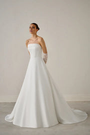 Satin A-Line Gown with Strapless Asymmetrical Cuff Neckline Wedding Dresses - US 2 / UK 6 / EU 32