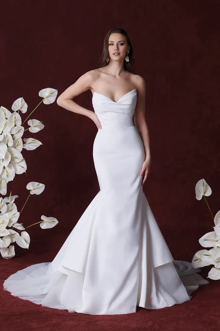 Satin Mermaid Wedding Dress Accented with Apron Tulle Skirt Wedding Dresses - US 2 / UK 6 / EU 32