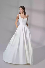 Satin Sleeveless Ball Gown with Square Neckline Wedding Dress
