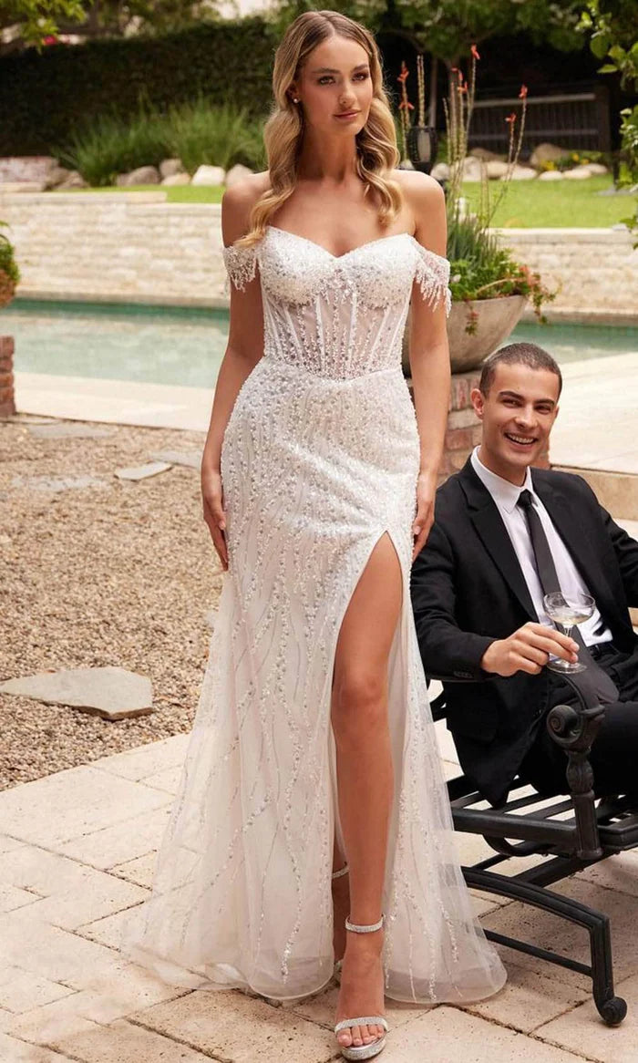 Sequin Embellished A-line Split Fork Bridal Gown Wedding Dresses